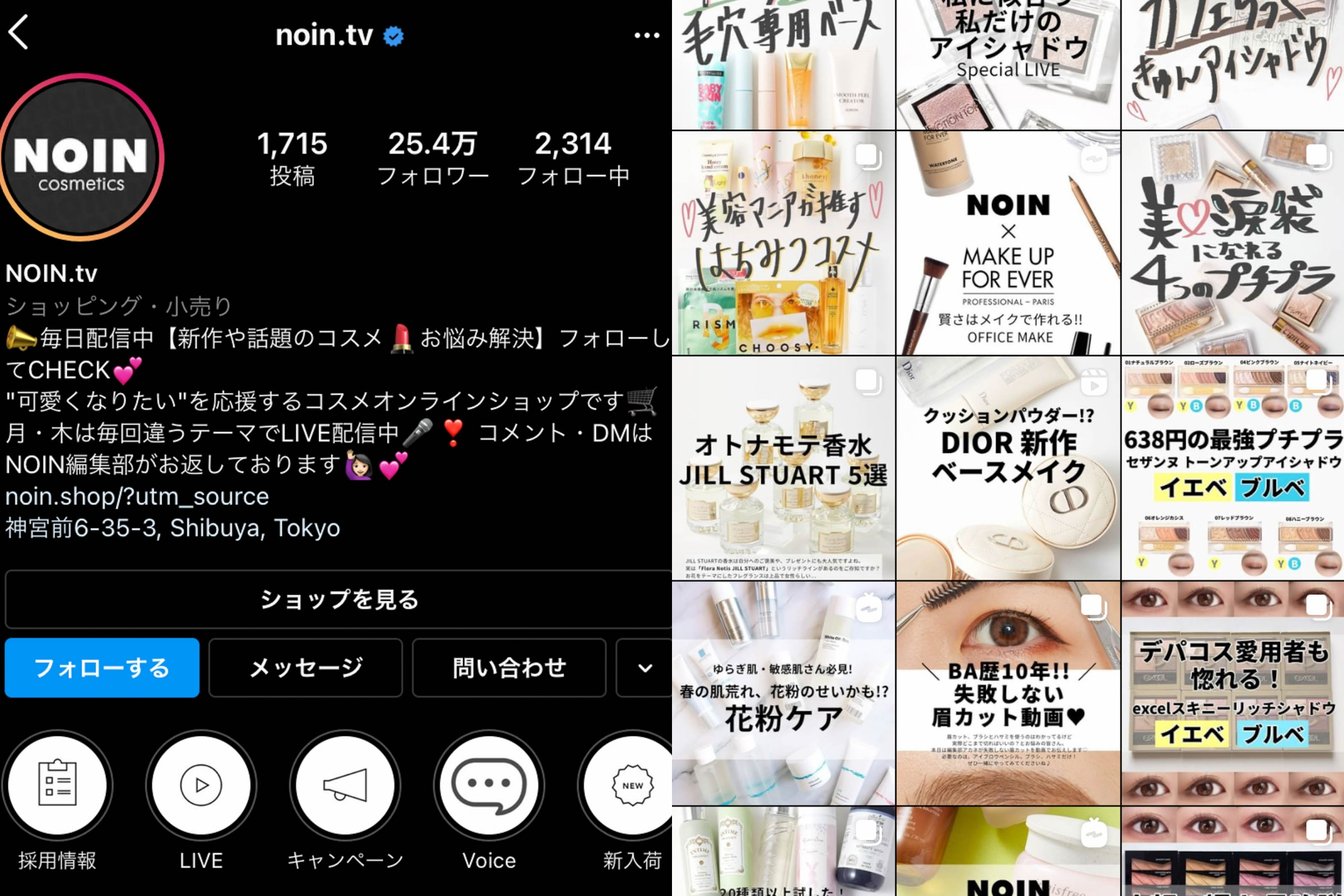 NOIN.tvのコンテンツでは、「失敗しない眉毛の描き方」や「まつ毛のカープキープ術」など、社内の美容部員経験者や編集部が企画した「リアルにためになる」情報をほぼ毎日発信。コメントにも細く対応し、一日100人ほどから送られるDMでは商品選びの相談に親身になって対応する手厚さがポイントだ。