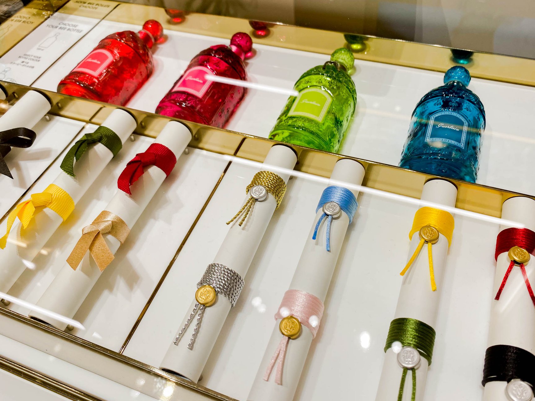 オープンを記念して、1853年に誕生したフレグランス「ビーボトル」(1万7900円)を限定パッケージで発売。ラベルには桜と富士山をデザインした。また、フレグランス「カラー ビーボトル」の購入者を対象に4月16日から18日までの期間、職人がボトルネックのリボンに刺繍するパーソナライズサービスを提供する。