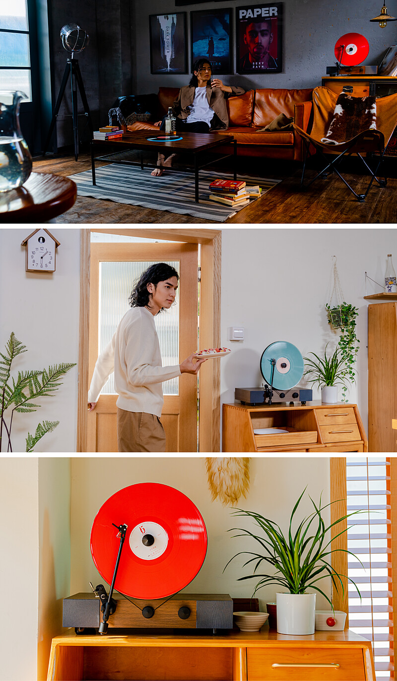 温かみのあるサウンドは、リラックスできる空間作りに最適だ。カバーからビニール盤を取り出し、ターンテーブルに置くと針がゆっくりとスライドしていき、レコードがくるくると回り始める。Gloture社は「ユニークで高級感がある外観。どこか繊細で温かみのあるサウンドが聞く人の心をそっと撫でます」という。