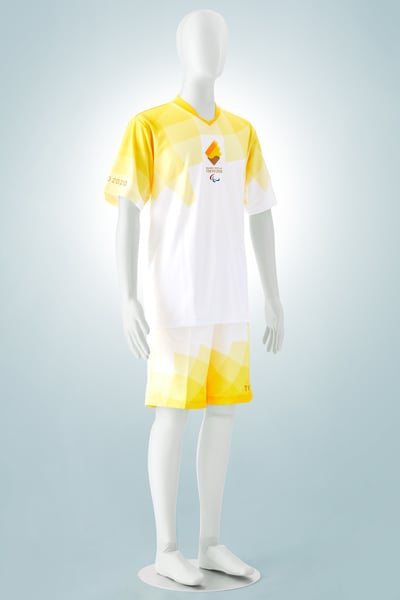 ユニフォームは、ホワイトをメインカラーに用いた爽やかなスポーティスタイルに仕上げた。ドローストリングジャケットやストライプのベルトには、ペットボトルから再生されたリサイクルポリエステル「Repreve®️」、ポロシャツやシューズ、マスクにはアメリカ産のコットンを採用。スリムなシルエットのホワイトデニムパンツにはサステナブルな皮革代替素材「MIRUM®」のバックパッチをあしらった。