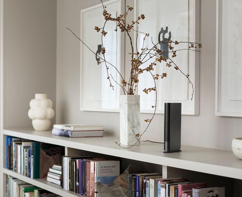可能な限りスリムなスピーカーを作るというコンセプトでデザインされたBeosound Emergeは、ハードカバー本のような外観。実際、本棚に収納する本のように縦置き仕様となっていて、幅は6.7センチだ。