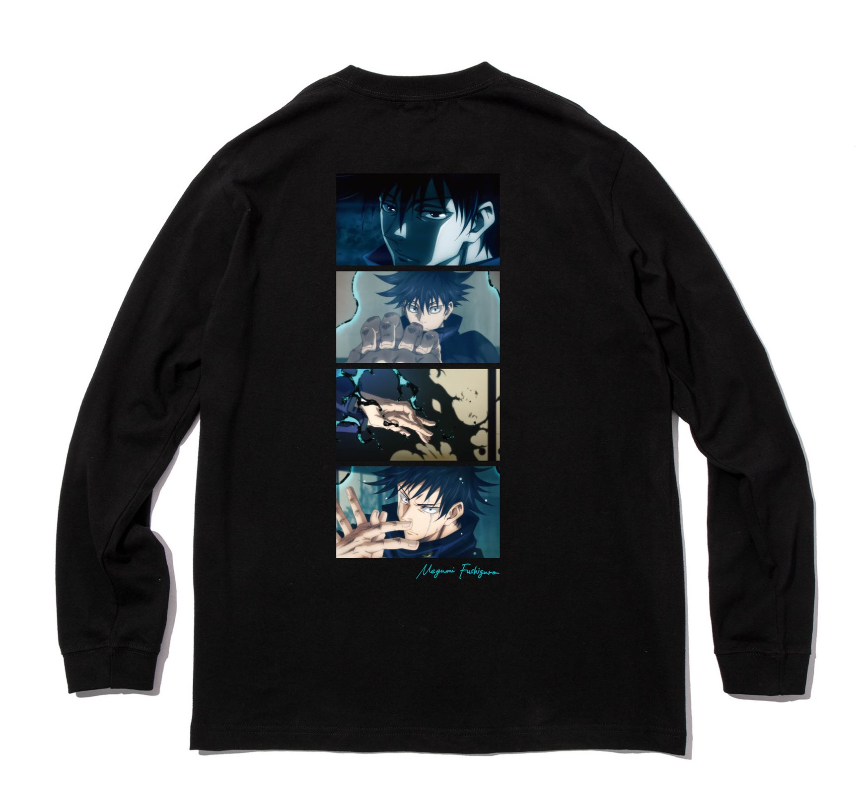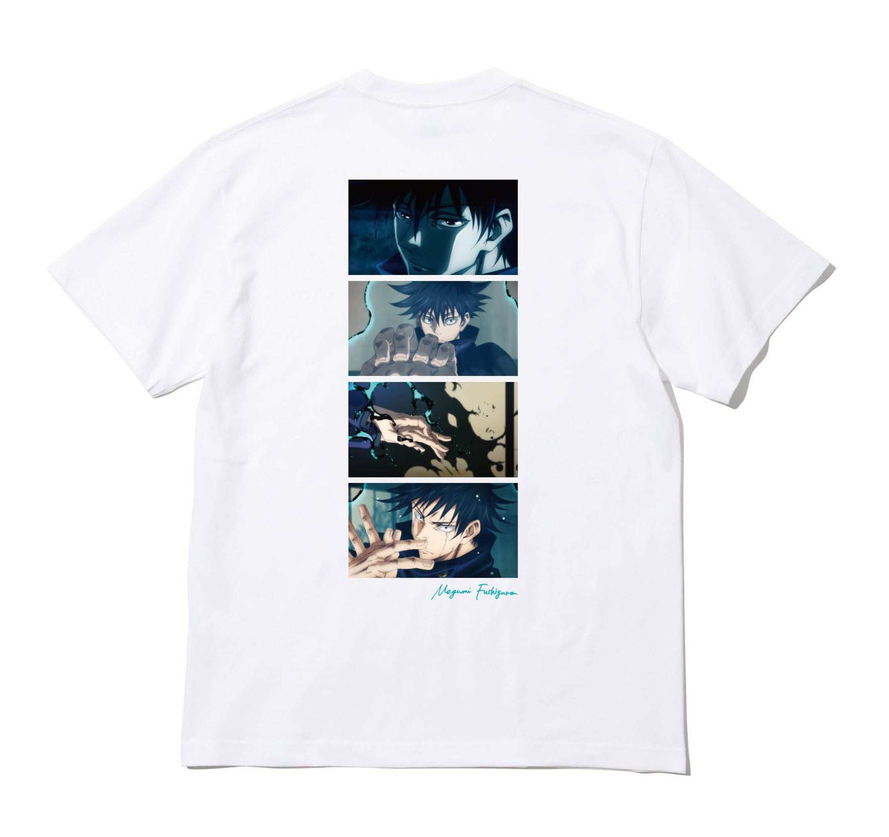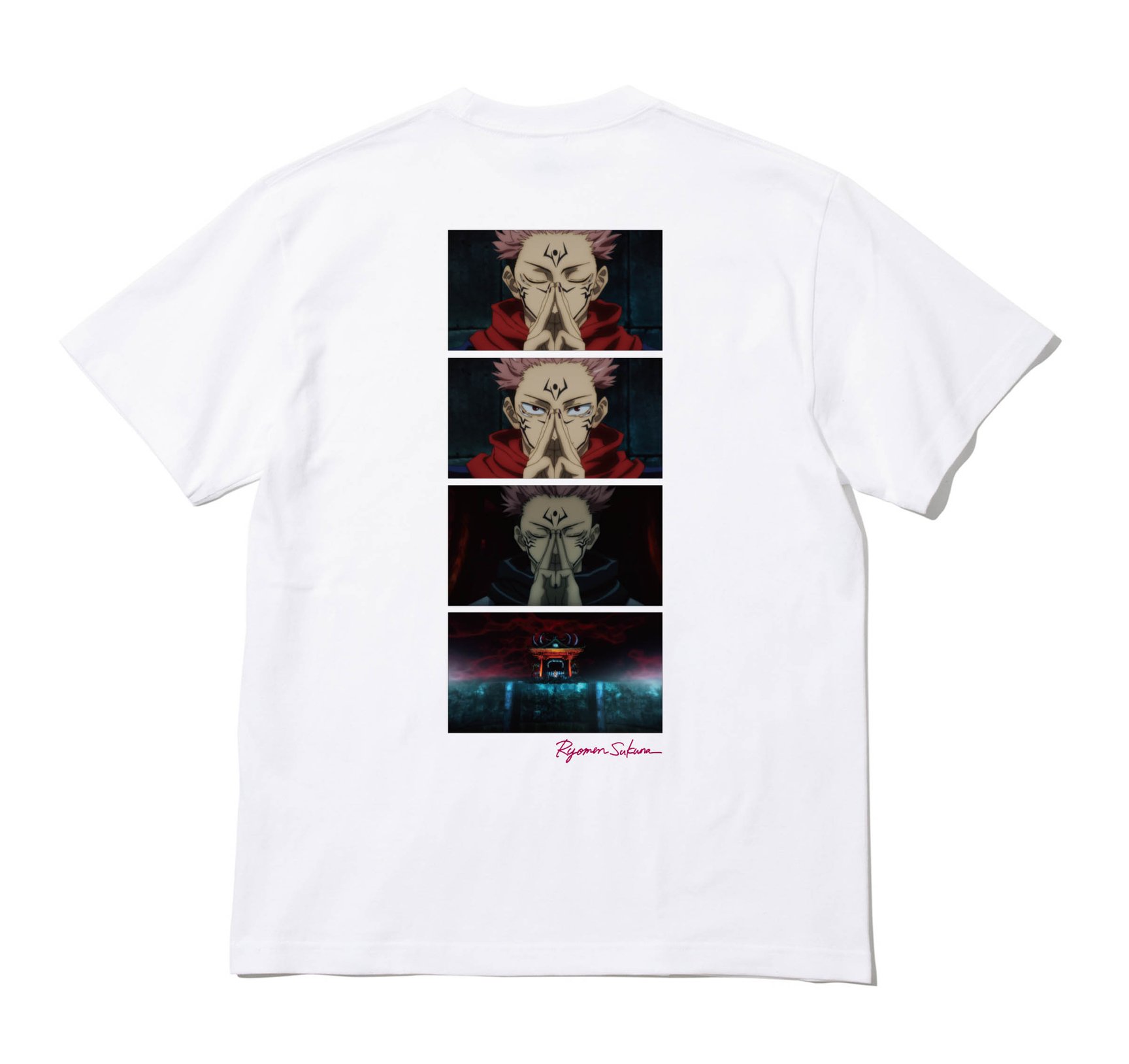 第2弾では、劇中で人気のシーンからデザインをセレクト。虎杖悠仁と真人の戦闘シーンや、両面宿儺が「領域展開 伏魔御廚子」を使う場面、京都姉妹校交流会編の五条悟などのシーンからデザインを採用した。このほか、伏黒恵と釘崎野薔薇のデザインが揃う。価格はTシャツが5280円、ロングTシャツが6490円、ステッカーセットが2200円(いずれも税込)。