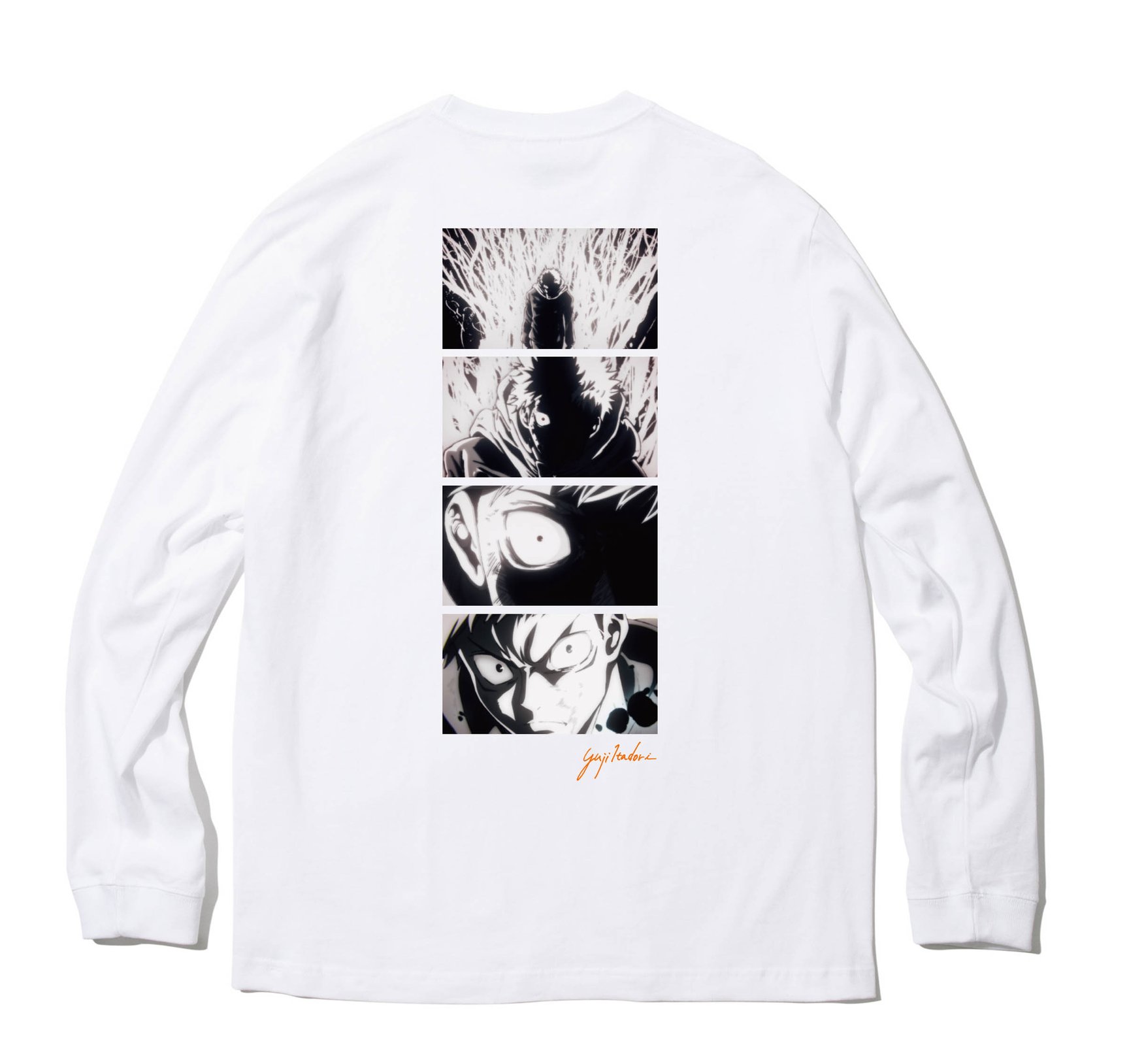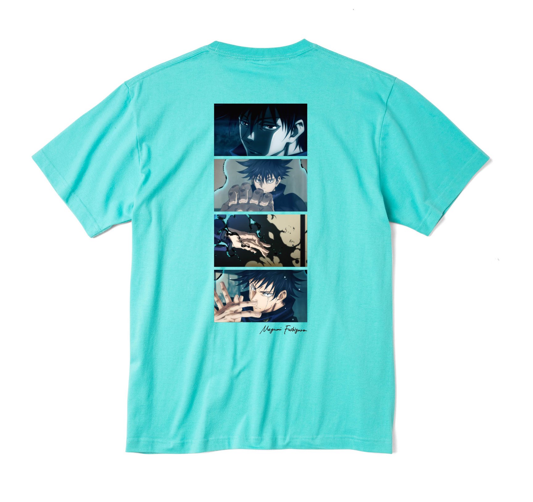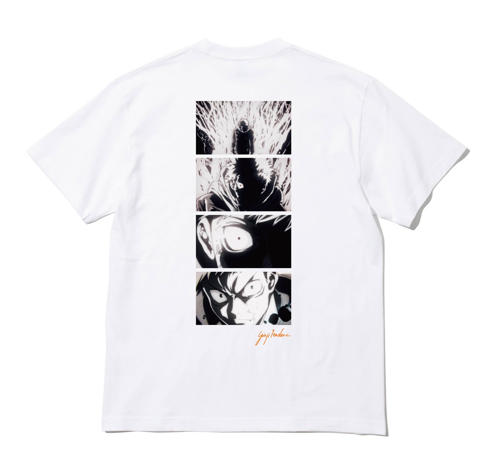 第2弾では、劇中で人気のシーンからデザインをセレクト。虎杖悠仁と真人の戦闘シーンや、両面宿儺が「領域展開 伏魔御廚子」を使う場面、京都姉妹校交流会編の五条悟などのシーンからデザインを採用した。このほか、伏黒恵と釘崎野薔薇のデザインが揃う。価格はTシャツが5280円、ロングTシャツが6490円、ステッカーセットが2200円(いずれも税込)。