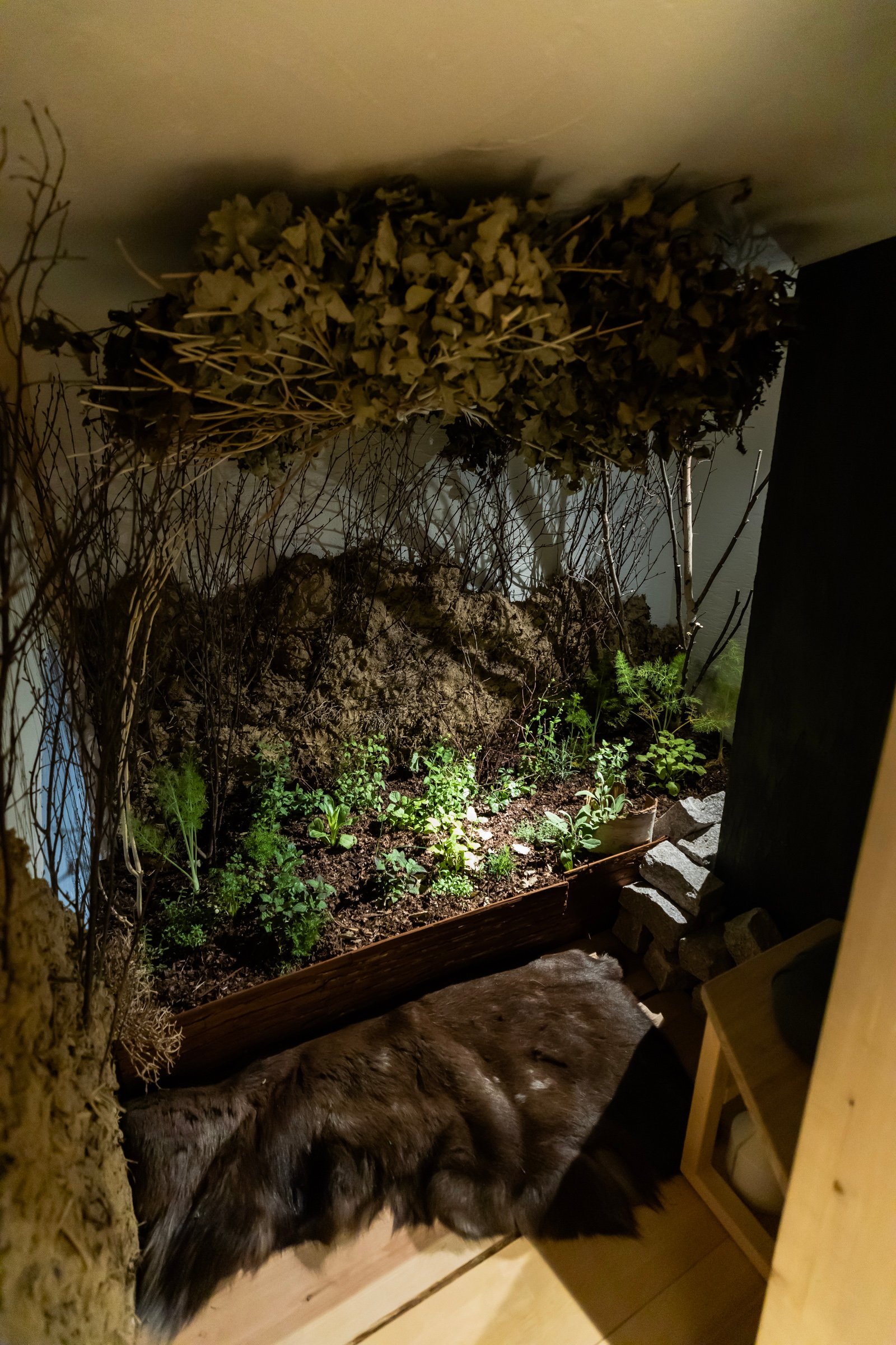 女性エリアは、フィンランドサウナに加え、畳を敷き、室内に水盤を設けた通称「池サウナ」を用意。腐葉土とハーブを敷き詰めた内気浴スペースも設ける。いずれのエリアにも水圧による体の負荷を軽減するため、冷凍庫を活用しマイナス25度の温度に設定したアイスサウナを設置した。