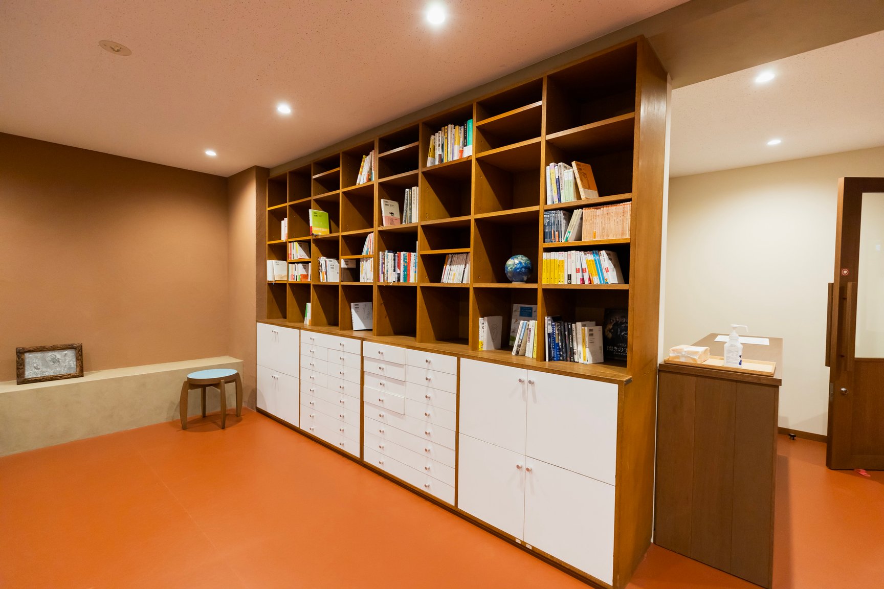 2・3階のほぼ日の學校では、約100人を収容できる「ガリバー」と、その半分程度の広さの「ホビット」の2部屋の教室を用意。業界人による講演会などを開く予定で、主に年内中のローンチを目指して開発中のほぼ日の學校のアプリで配信する収録スタジオとして活用する。ロビーにはイラストレーター和田誠の事務所が寄贈した本棚を設置し、前回の授業に関する本を陳列。なお、同フロアはすでに一部授業で使用しているが、アプリのローンチをもって開校となる。