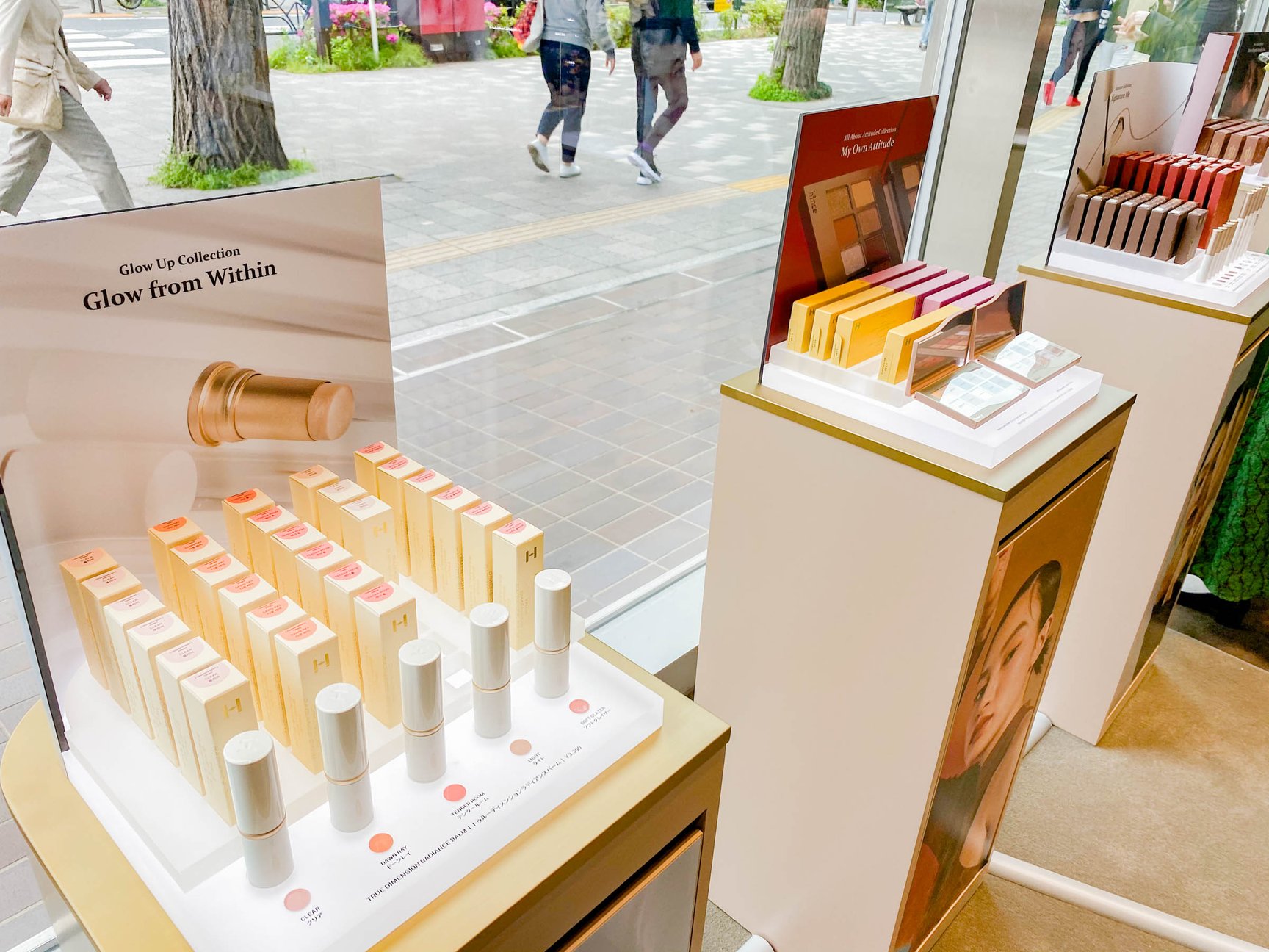店頭では今月発売したばかりのベースメイクライン「セカンドスキン」をはじめ、透明感のある発色が支持されている「グロウアップネイルカラー」や、複数の質感の10色が揃う「ニューデップスアイシャドウパレット」など、ブランドのスター商品を試すことができる。