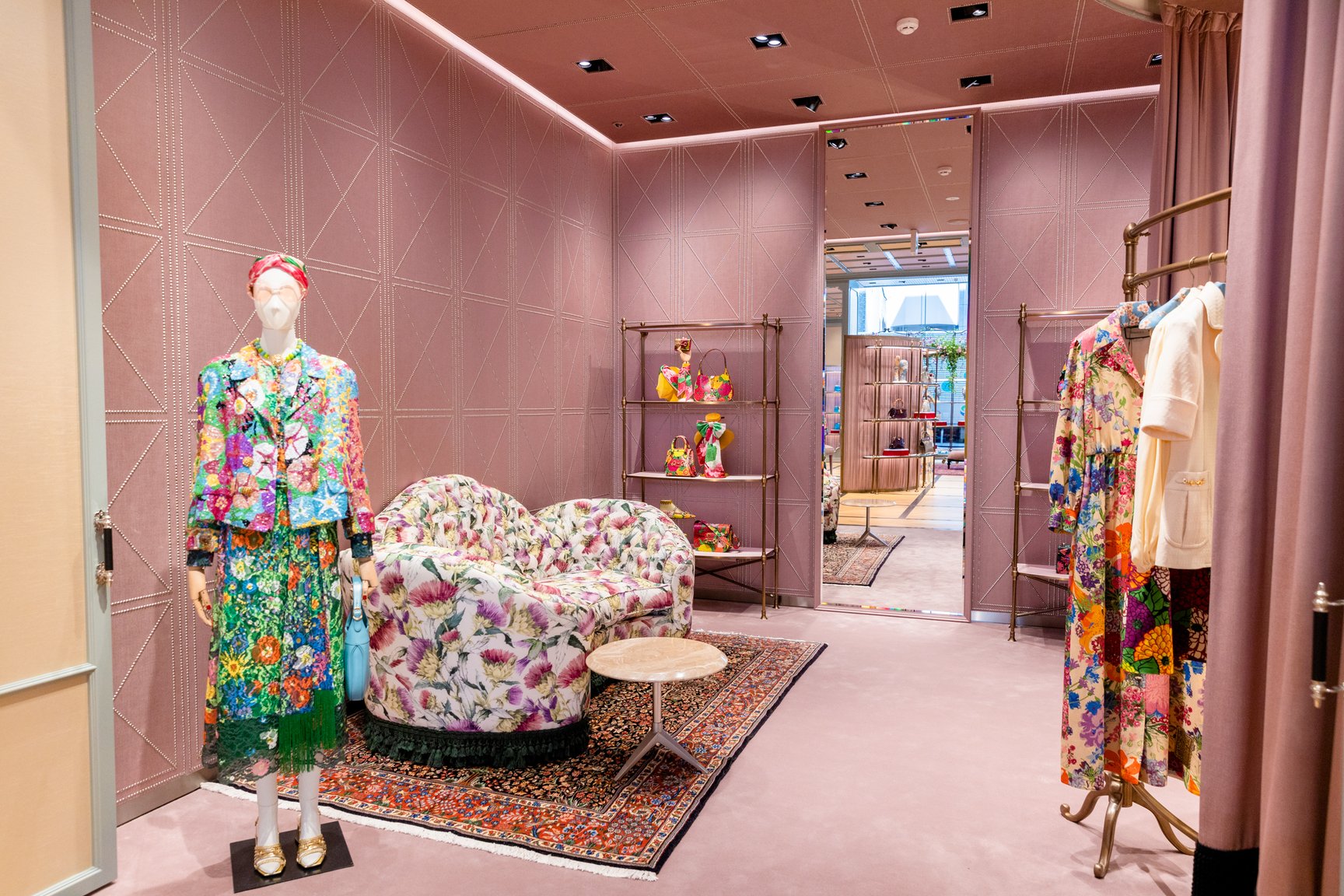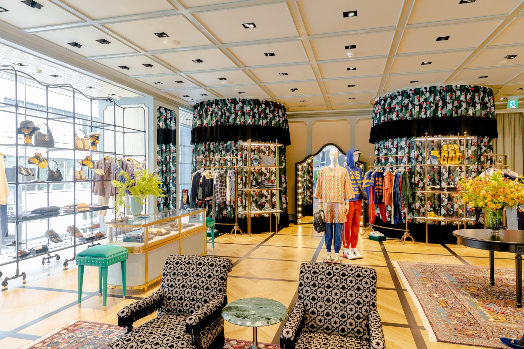 新店舗は4フロアのうち、1階のウィメンズと2階のメンズの売り場がオープン。続いて今秋、3階に日本初展開となる完全予約制のホームウェアサロン「グッチアパートメント(Gucci Apartment)」、そして年内を目処にフィレンツェとロサンゼルスに次ぐ世界3店舗目となるレストラン「グッチ オステリア ダ マッシモ ボットゥーラ」と段階的にオープンする予定で、ファッション、ライフスタイル、食といった様々な側面からアレッサンドロ・ミケーレ(Alessandro Michele)が手掛けるグッチのクリエイティブ・ビジョンを発信していく。