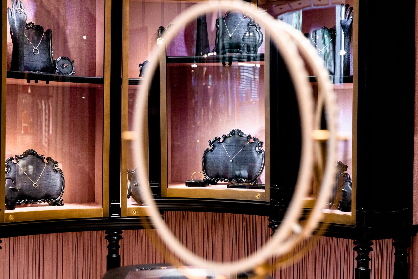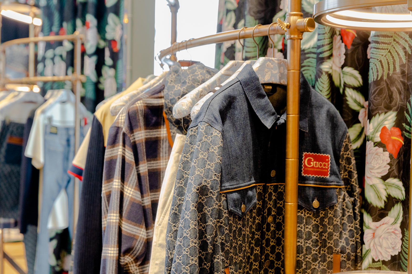 ガラスのファサードで開放感あふれる売り場は総面積約725平方メートルの広さで、ウェアをはじめ、シューズ、ジュエリー、ウォッチ、シルク製品、アイウェア、フレグランスやハンドバッグなどをラインナップ。ショップの特徴を反映し、バッグ類はエキゾチックレザーのハイエンドラインや、「ホースビット1955」「ジャッキー 1961」といったブランドのオーセンティックなモデルを豊富に揃える。