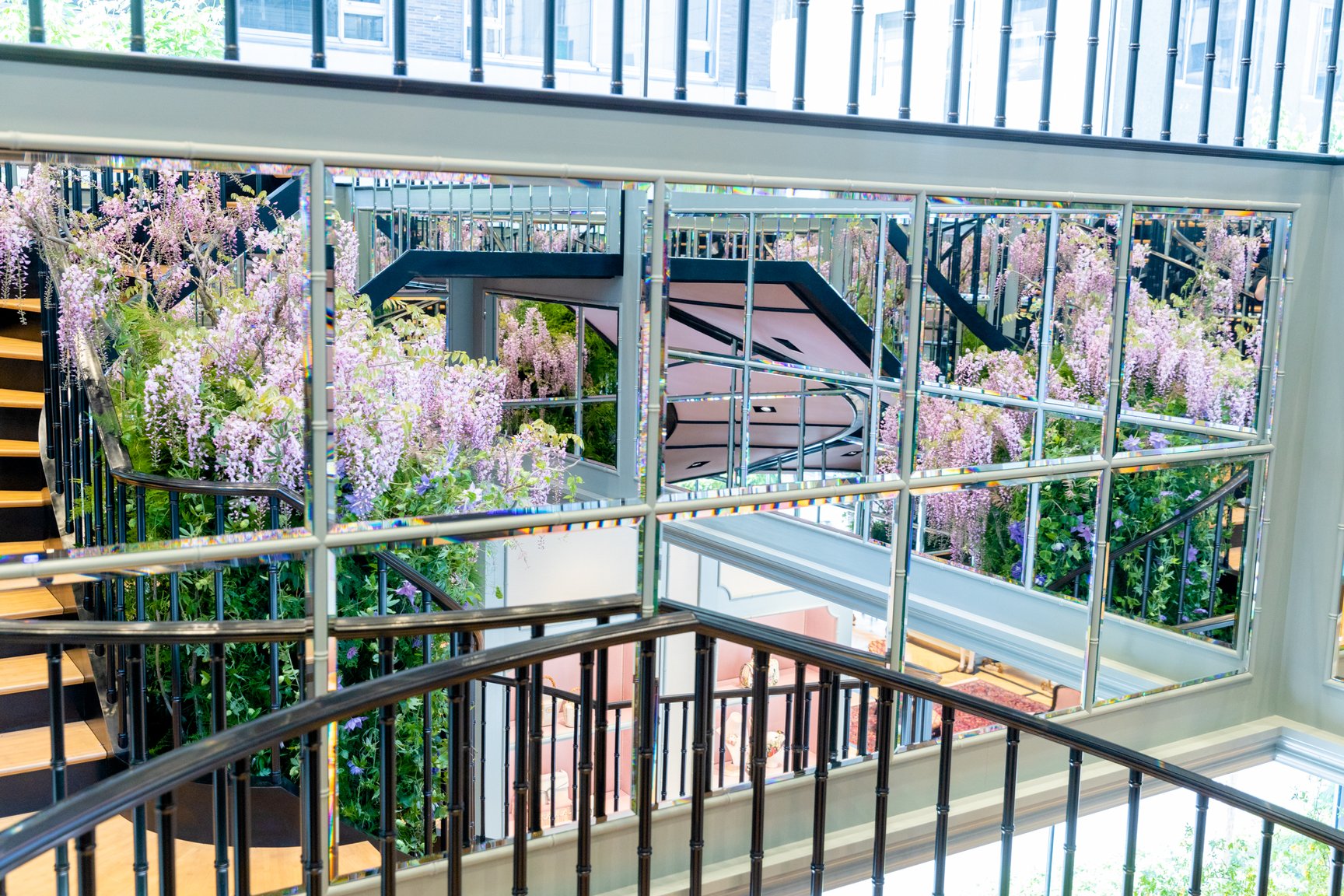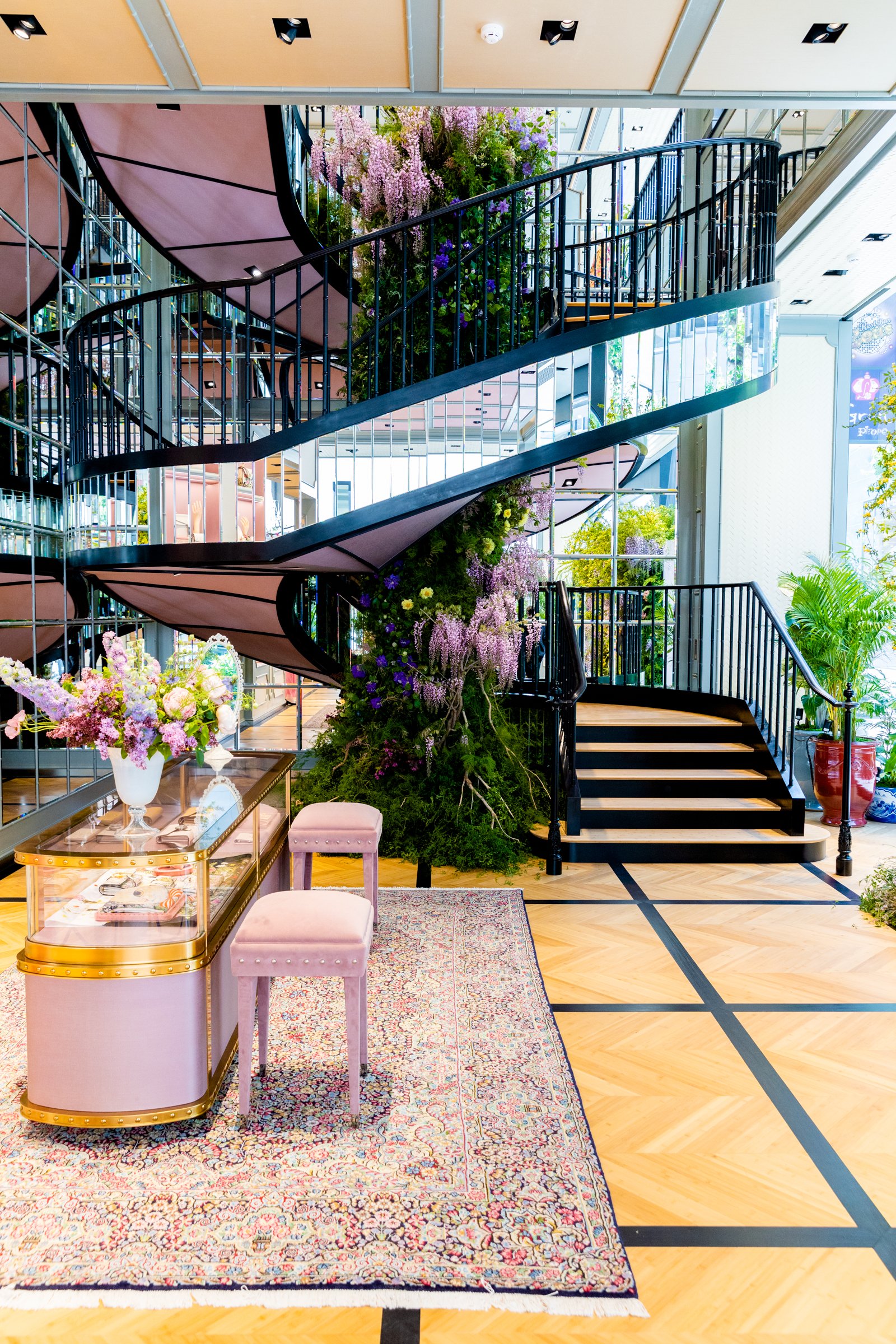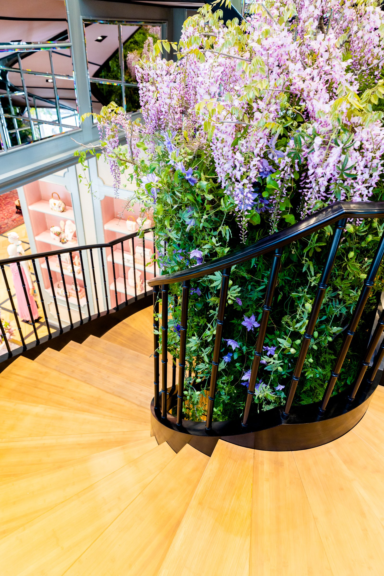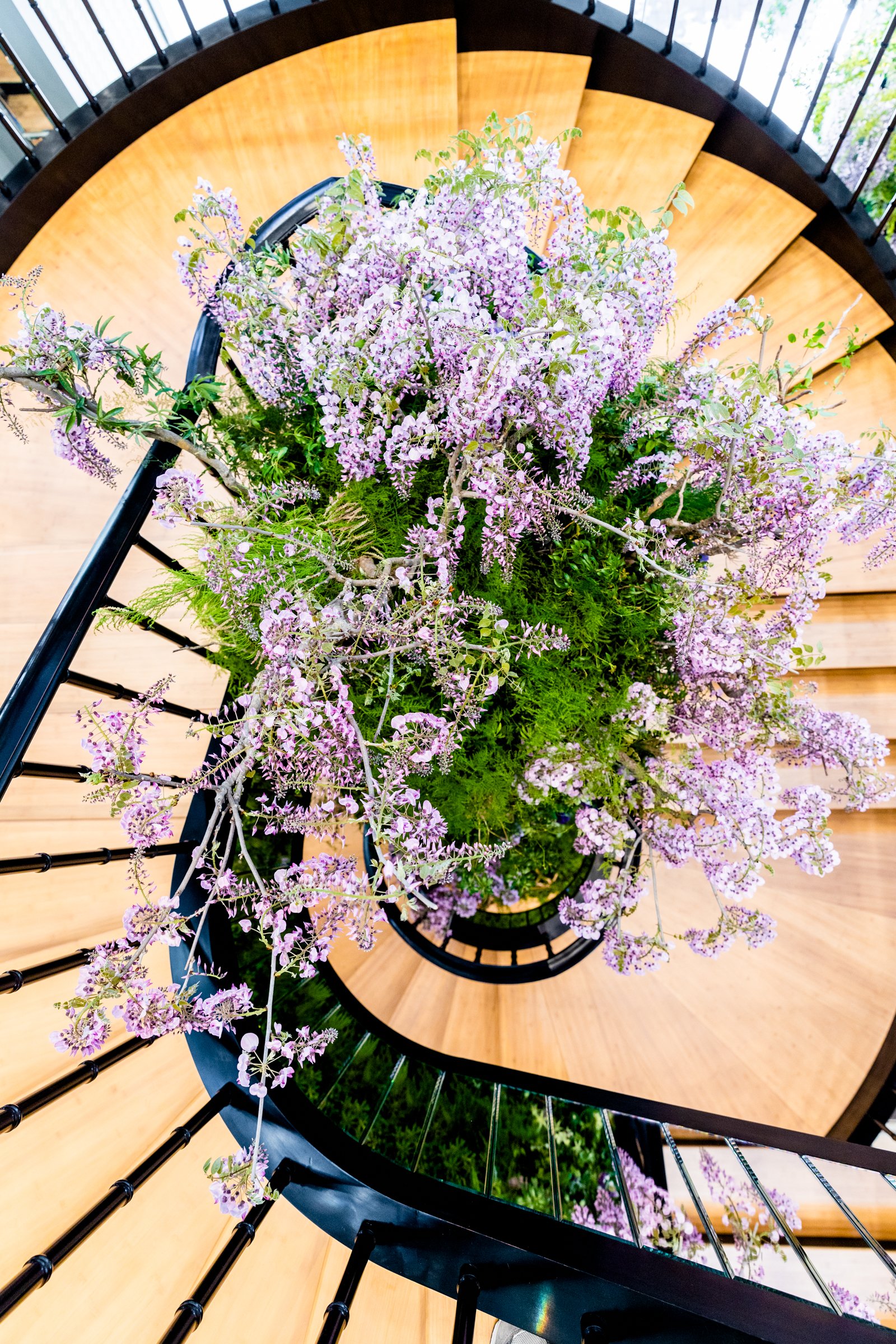 1階と2階を繋ぐ螺旋階 ※生花の装飾はオープン日前日までの特別仕様