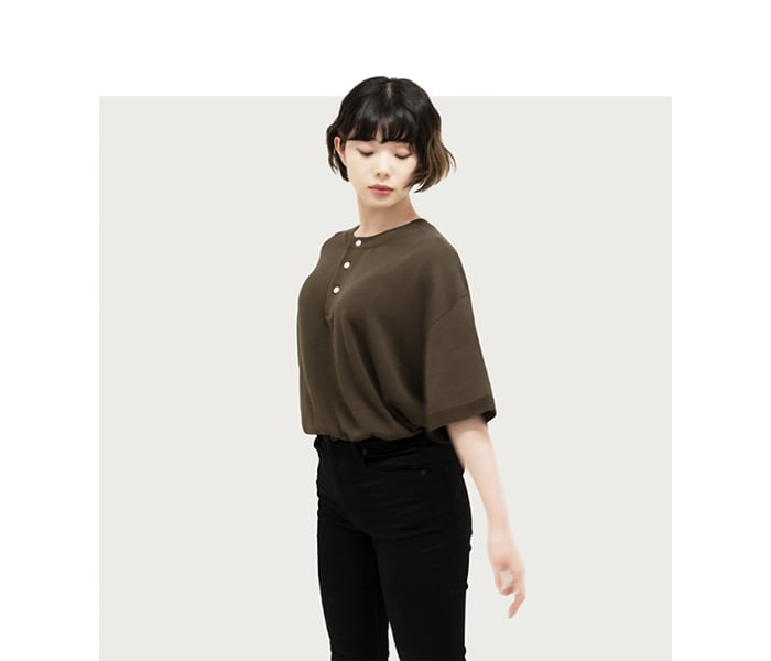 続いて、「2WAY HENRY NECK」(税込1万1750円)は、前後の区別がない2WAYだから、その日の気分に合わせてコーディネートができます。