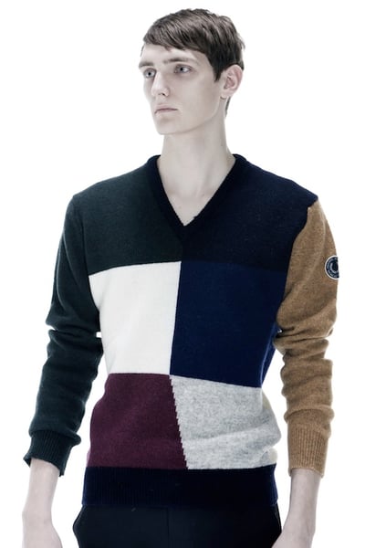 また、今回のコレクションでは100クラブに通っていたフォトグラファーのブライアン・フリン(Brian Flynn)をフィーチャー。1982年から1983年にかけて100クラブで友人たちと過ごした様子をポケットサイズのコダック製カメラで撮影した写真をパッチにプリントし、一部のアイテムのフロントや襟元に縫い付けた。コットン100%のオーバーコート(18万7000円/すべて税込)にはチェッカーボードと写真のプリントパッチに加え、襟元にバッジ、胸元にはラフ・シモンズのグラフィックサインを施した。
