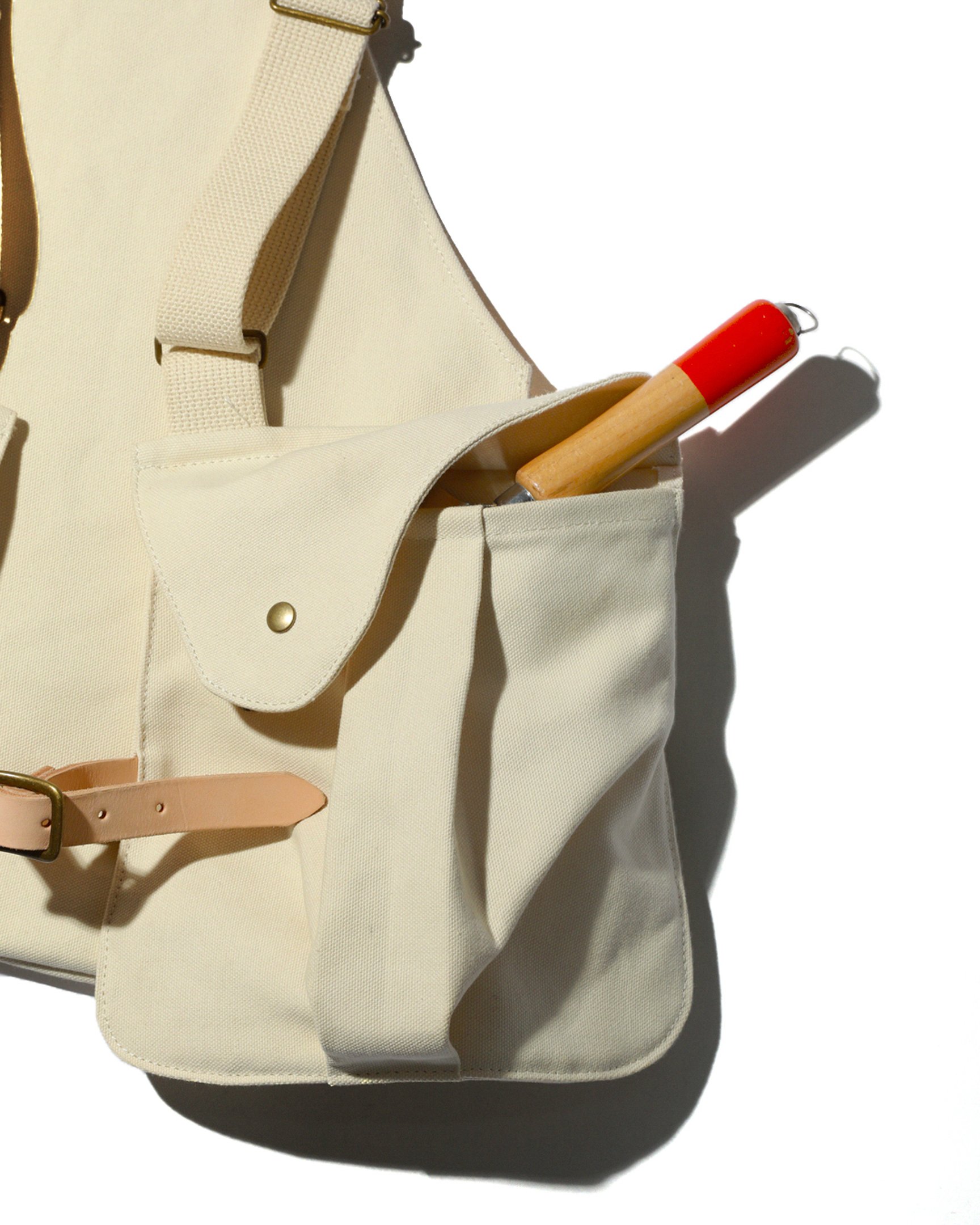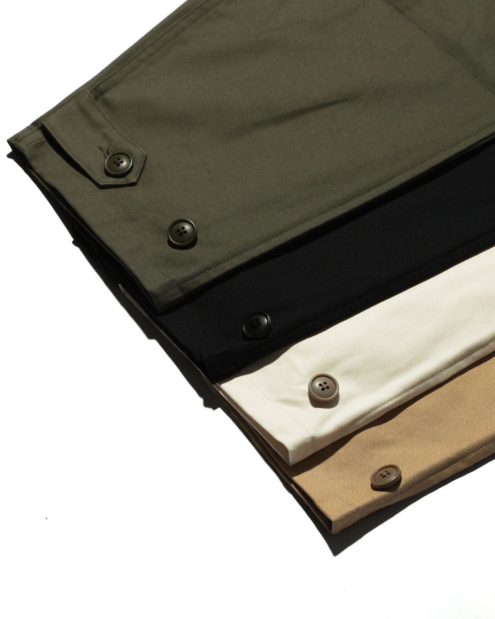 ファーストシーズンでは、岡田自身が農作業を通して感じた実体験を反映したアイテムを展開。農作業中に地面に膝をついて作業をすることが多いことから膝部分の生地を3枚地にし強度を上げたパンツ(1万9800円)や、収穫時に鎌から腕を保護し、腕まくりが落ちてこないよう、リブを通常より長くしたサーマル(1万2100円)、背面に農作業で使う鎌などを収納できるポケットを施したベスト(1万5246円)をはじめ、首後ろの日除として、ブリムの一部分が長くなっている帽子(9350円)や、農作業時に汚れやすい爪先や足裏などの部分は黒色、その他の部分はビビットカラーで切り替えたソックス(2585円/すべて税込)などをラインナップ。カラーパレットは黒やカーキに加えて、岡田の「土は汚いものじゃないと思う。汚れも経年変化として楽しむウェアとして使い続けて貰いたい」という想いからホワイトを取り入れたラインナップとなっている。