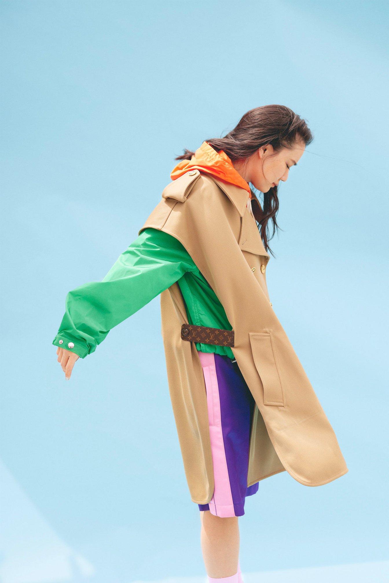 coat ¥459,800 and hairpin ¥73,700 both reference prices, hoodie ¥377,300 and shorts ¥139,700 by LOUIS VUITTON LOUIS VUITTON CLIENT SERVICE