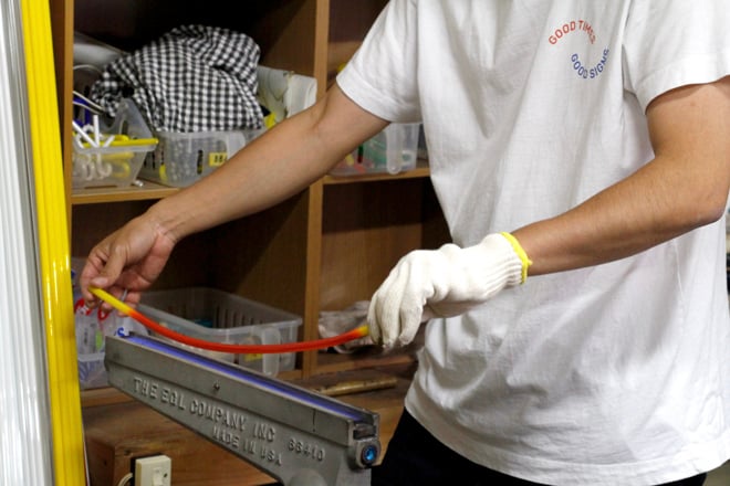 「完成したネオンを取り付ける工程でも、ガラスなのでビス1個落ちただけで割れちゃうのでずっと爆弾を触っているような感じですごく疲れます。地方出張での取り付けの時なんて、無事点灯するまでは緊張が途切れません(笑)」。