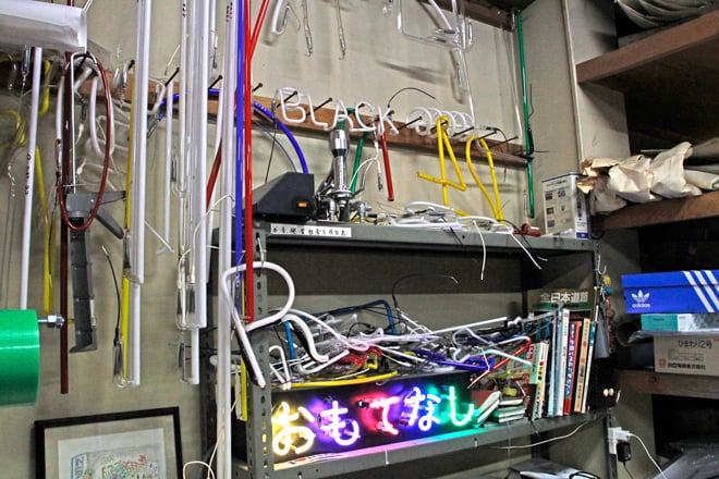 ネオン用のガラス管も年々種類は減り、価格も上がっている。現在、日本での生産は1社のみだという。色の種類が豊富なアメリカ製のものを輸入することもできるが、割れやすいネオン管は輸送料が高い。取り付けるための変圧器も価格が上がっており、こちらに関しても国内で生産しているのは1社。デッドストックのものを入手したりと、まさに「宝探し状態」(森山さん)だ。