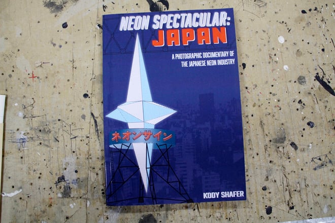 「友だちにコディ(Kody Shafer)っていうニューヨーク在住の子がいるんですけど、日本のネオンが好きで、最近それをまとめて本に出したんです。日本語は喋れないけれど、1年くらい日本に滞在して、大阪のネオンスタジオで修行しながら、国立図書館とかで資料を漁って作っていました。日本のネオンを、その時代のことを何も知らない外国人が編集したんです」。