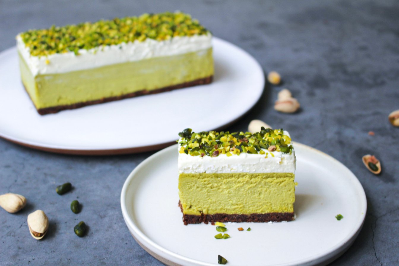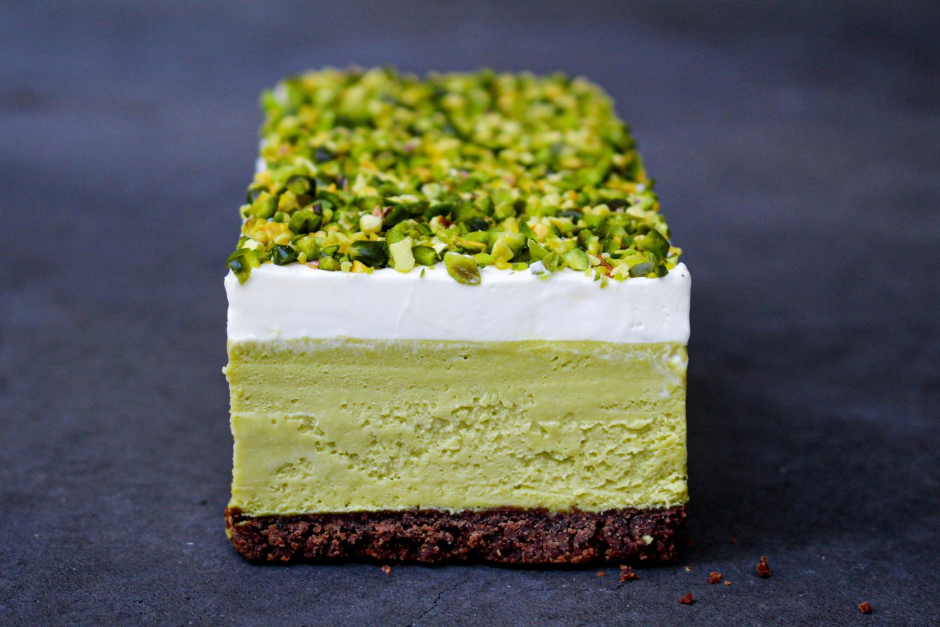 『THE CHEESECAKE by Megan - Pistachio -』(ホール3780円/1CUT 788円 税込)は、香りが良く色鮮やかなシシリー産・ピスタチオのペーストをあわせた濃厚なチーズケーキです。