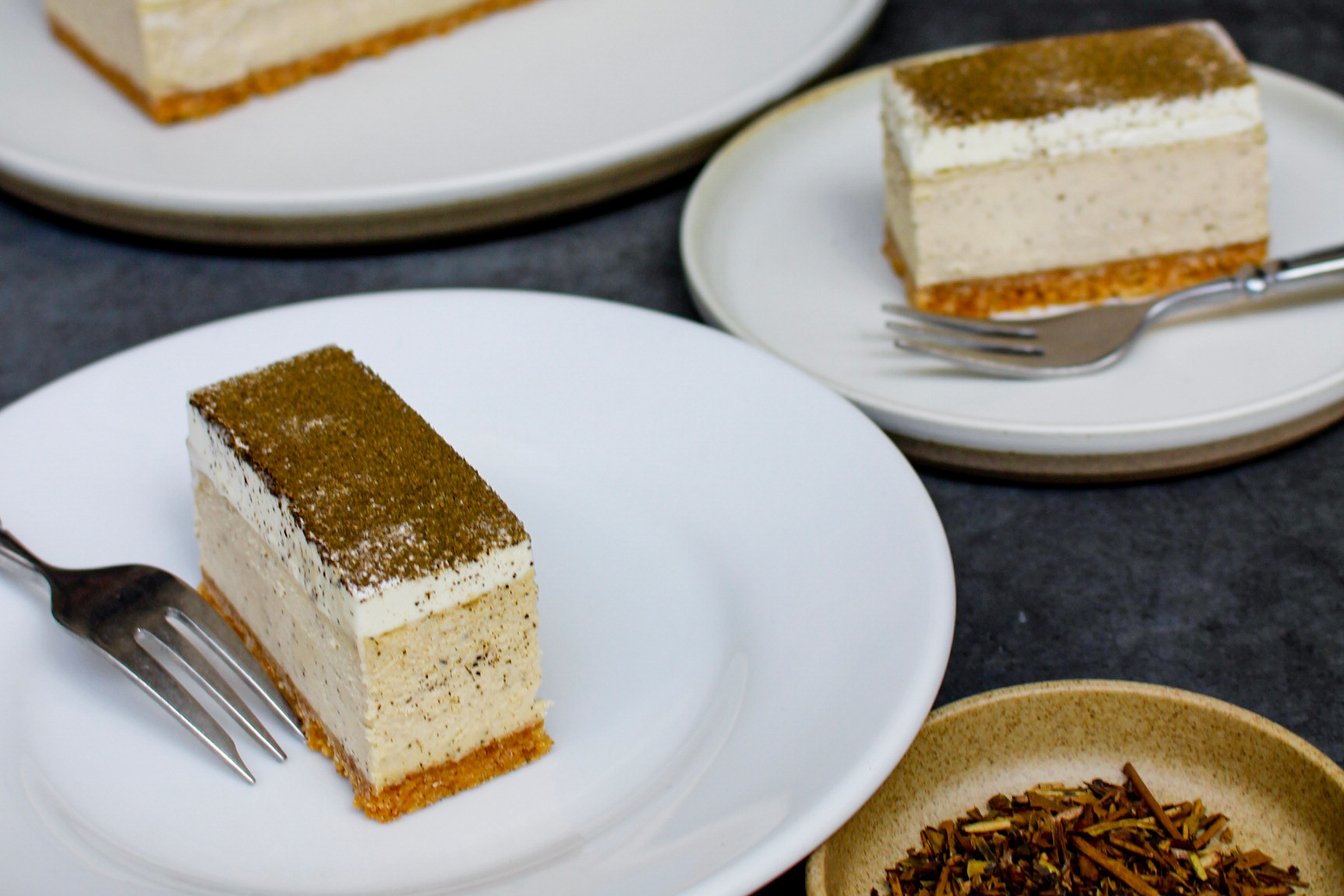 チーズケーキ生地には、ほうじ茶の甘味と香りを抽出したシロップ&煎った茶葉を細かく挽いた自家製パウダーが練り込まれているそうですよ。