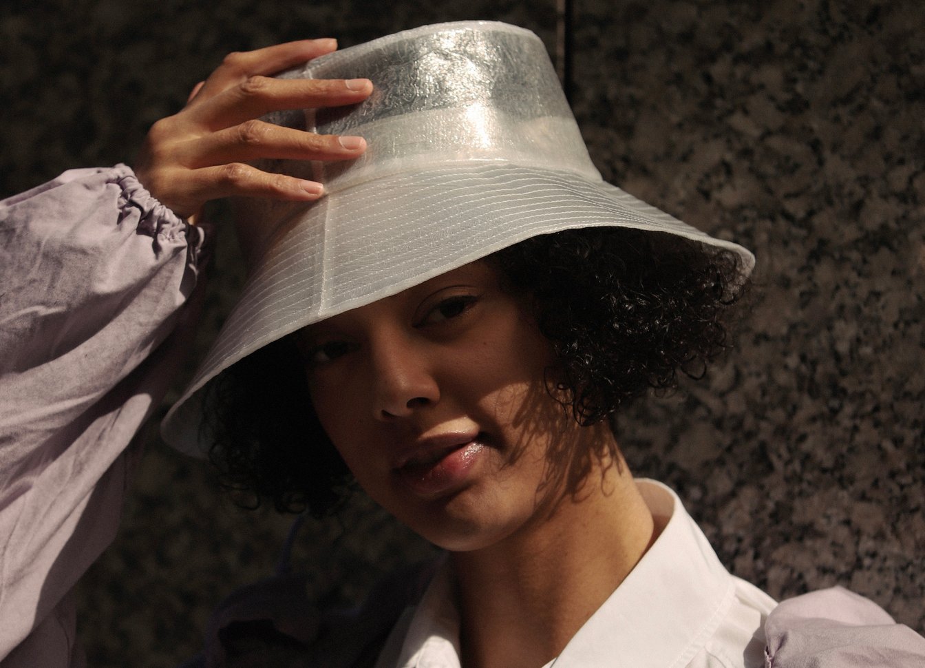 今回登場した「アンブレラ バケットハット」は、廃棄されたり忘れ物として保管された後に、最終的に廃棄されてしまうビニール傘を全面にリサイクルしたもの。