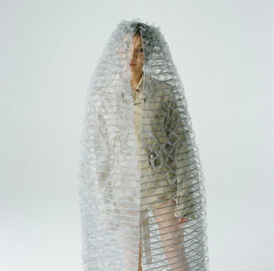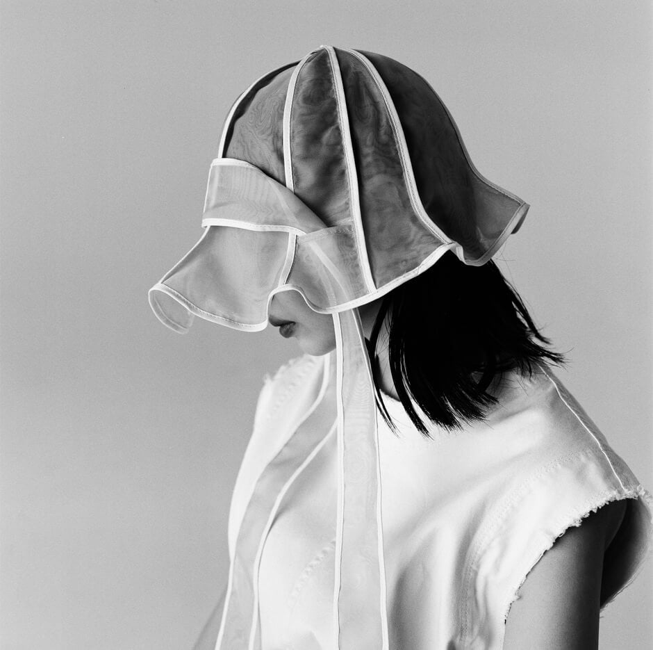 veil by 723 -SEVEN TWO THREE-, bodysuit by RYU KAGA, shoes stylist’s own