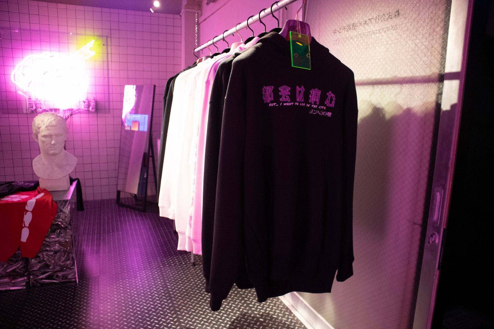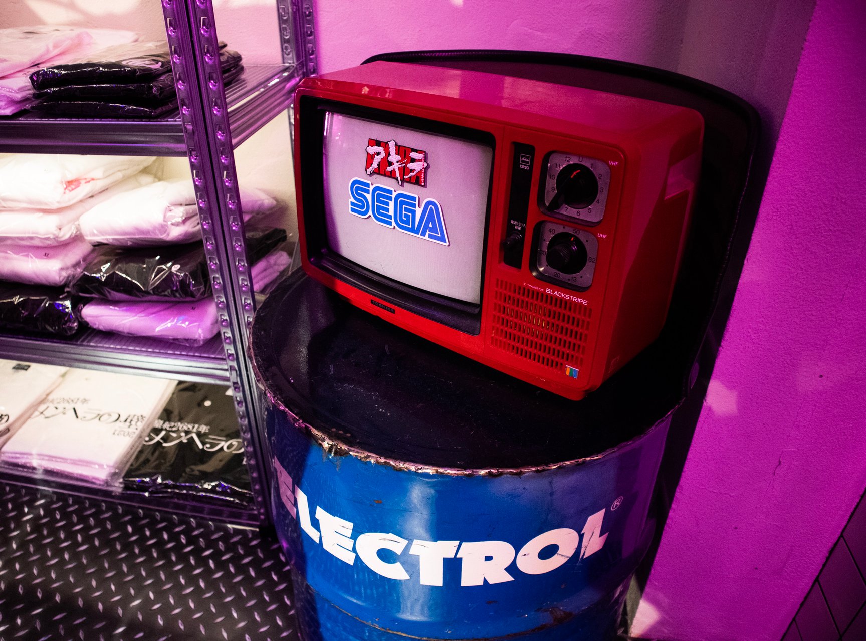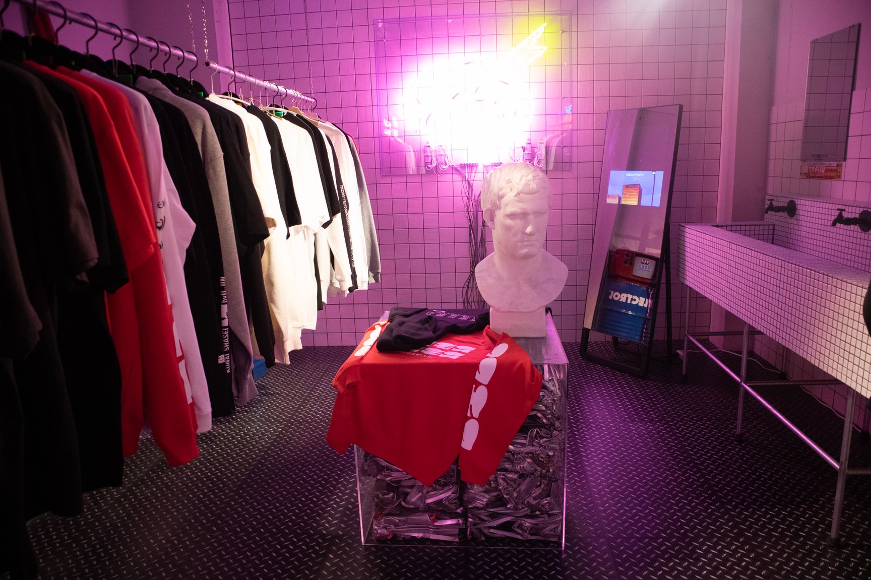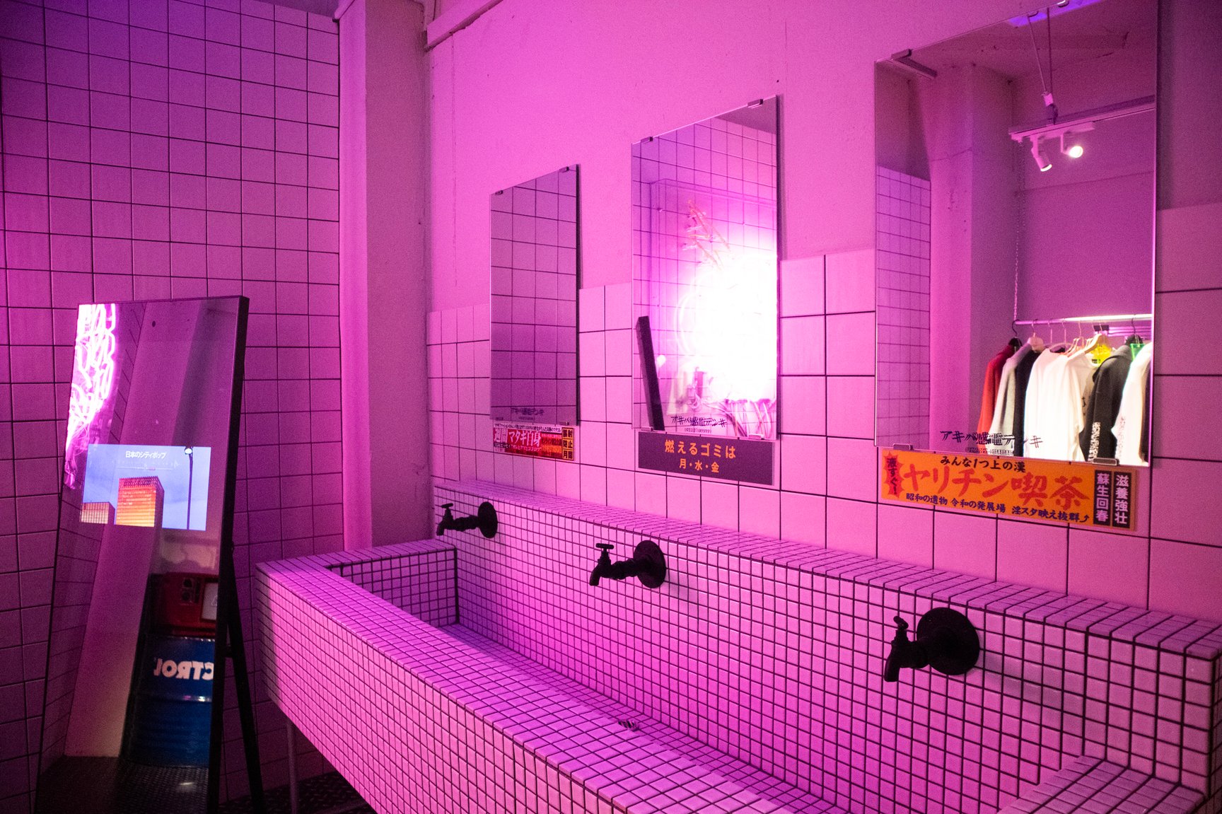 「健全なアパレルグッズの販売店です」「18歳未満のお客様でも立ち入り可能」 —— 秋葉原駅から徒歩約5分、中央通りに面した雑居ビルにアパレルショップ「アキバ感電デンキ」が今年2月にオープンした。地下への階段を降りると、ピンクのネオンが光るサイバーパンクな空間が広がっている。「アキバのアングラで時代の空気に逆行し尖って変わったアパレル、バラエティショップ」と謳う同店は、そのアイテムや内装の奇抜さからSNS上で話題を集めている。サブカルチャーの街 秋葉原にアパレルショップをオープンした理由とは?担当者に話を聞いた。