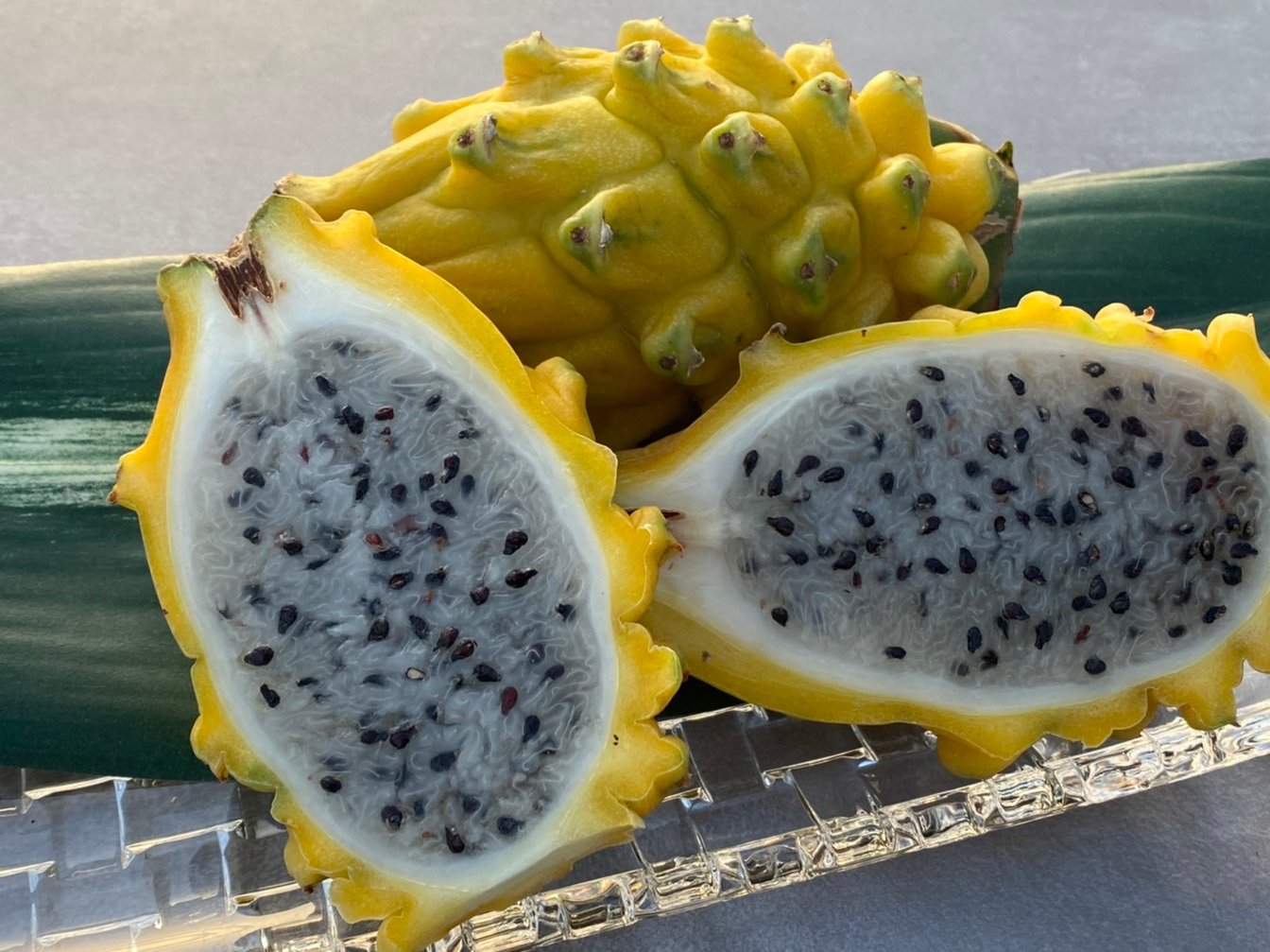 みずみずしいイエローピタヤはドラゴンフルーツの仲間なのだとか。