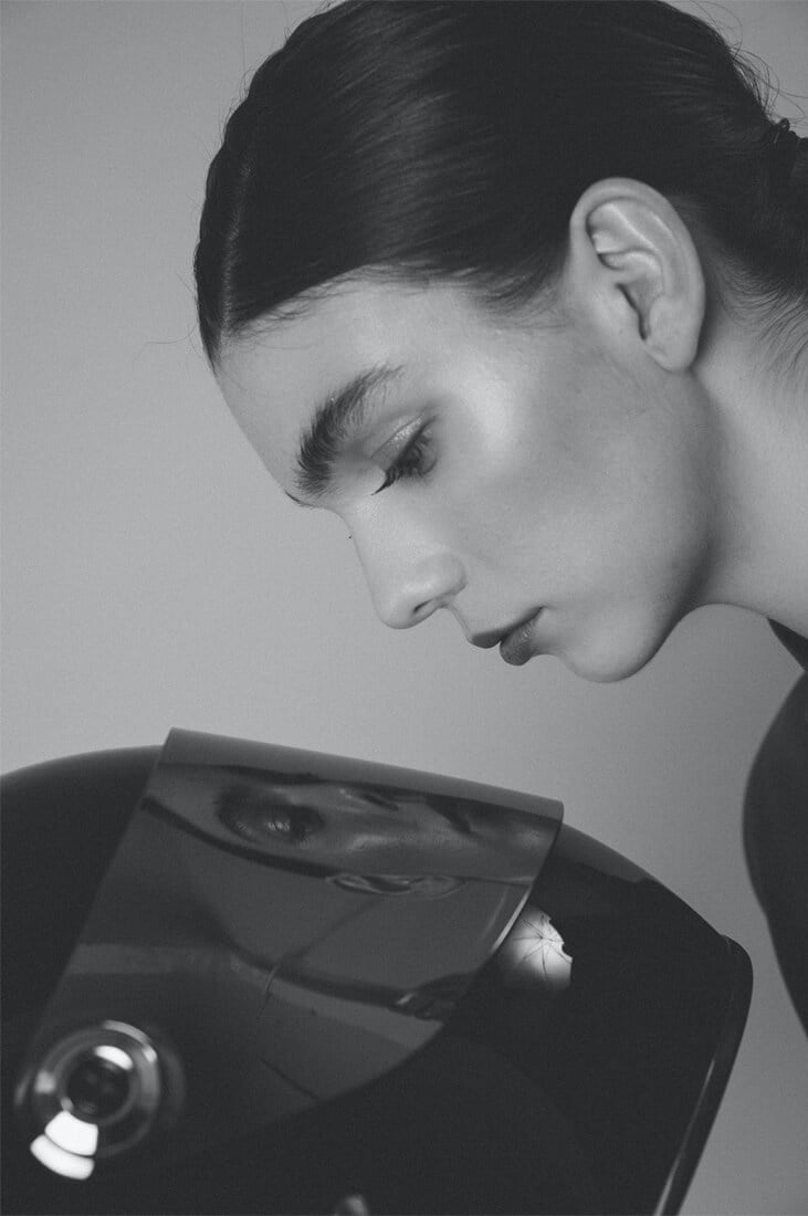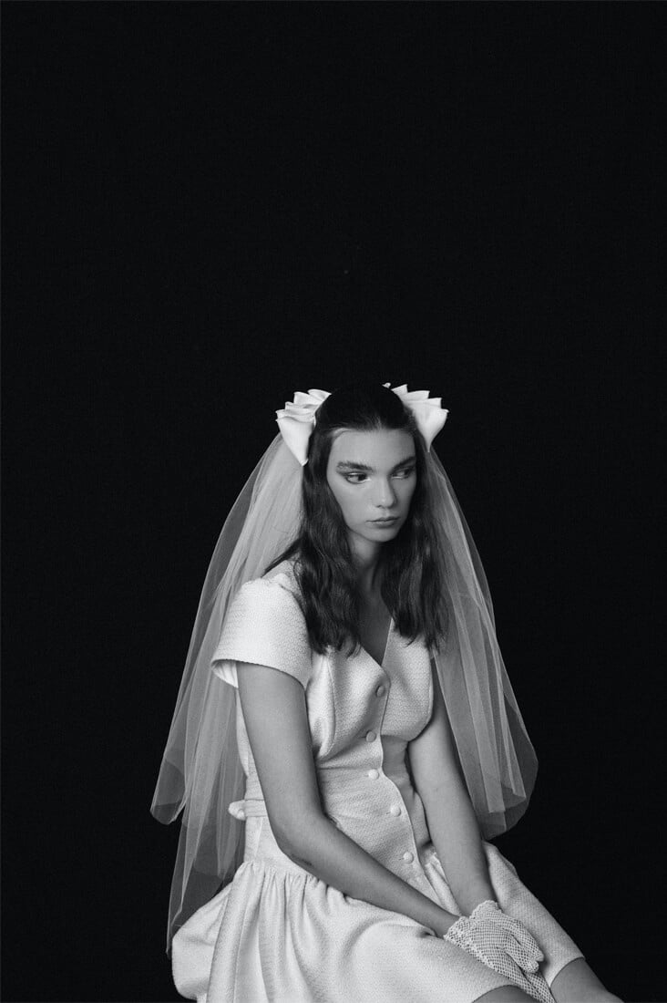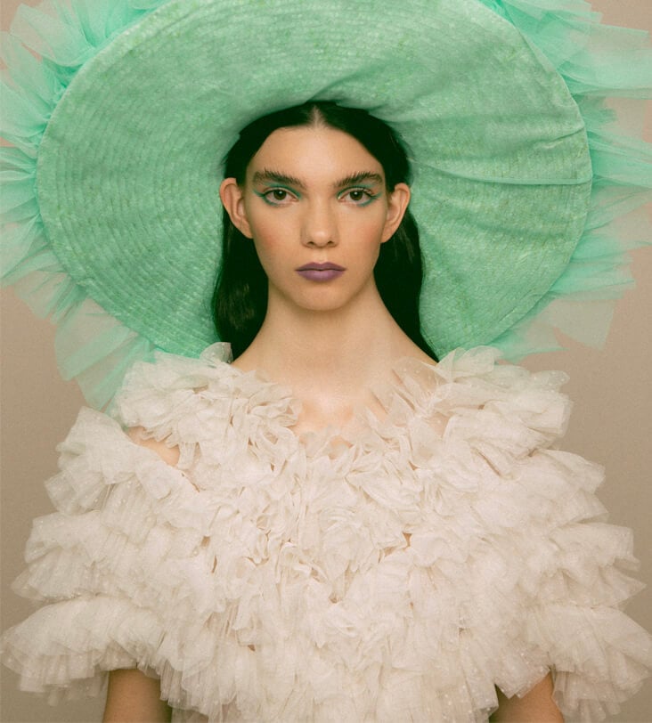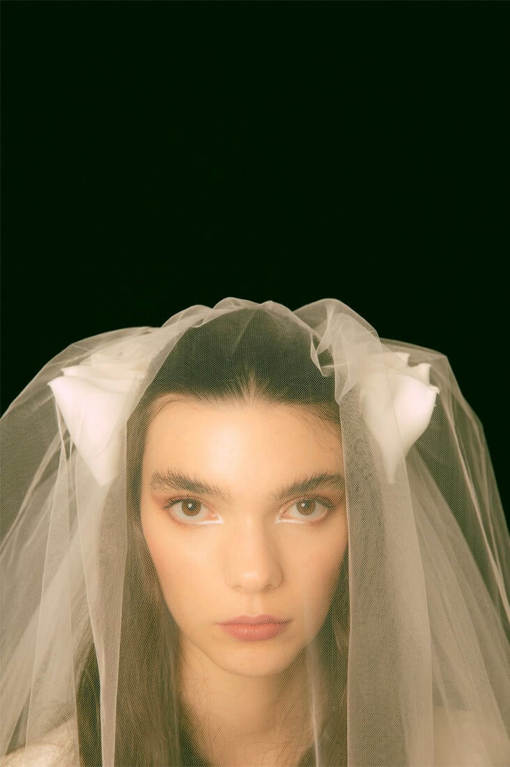 この作品は、ヘッドピースのようなシンプルなものを変えることで露わになる、1人の女性の多様なパーソナリティを表現しています。