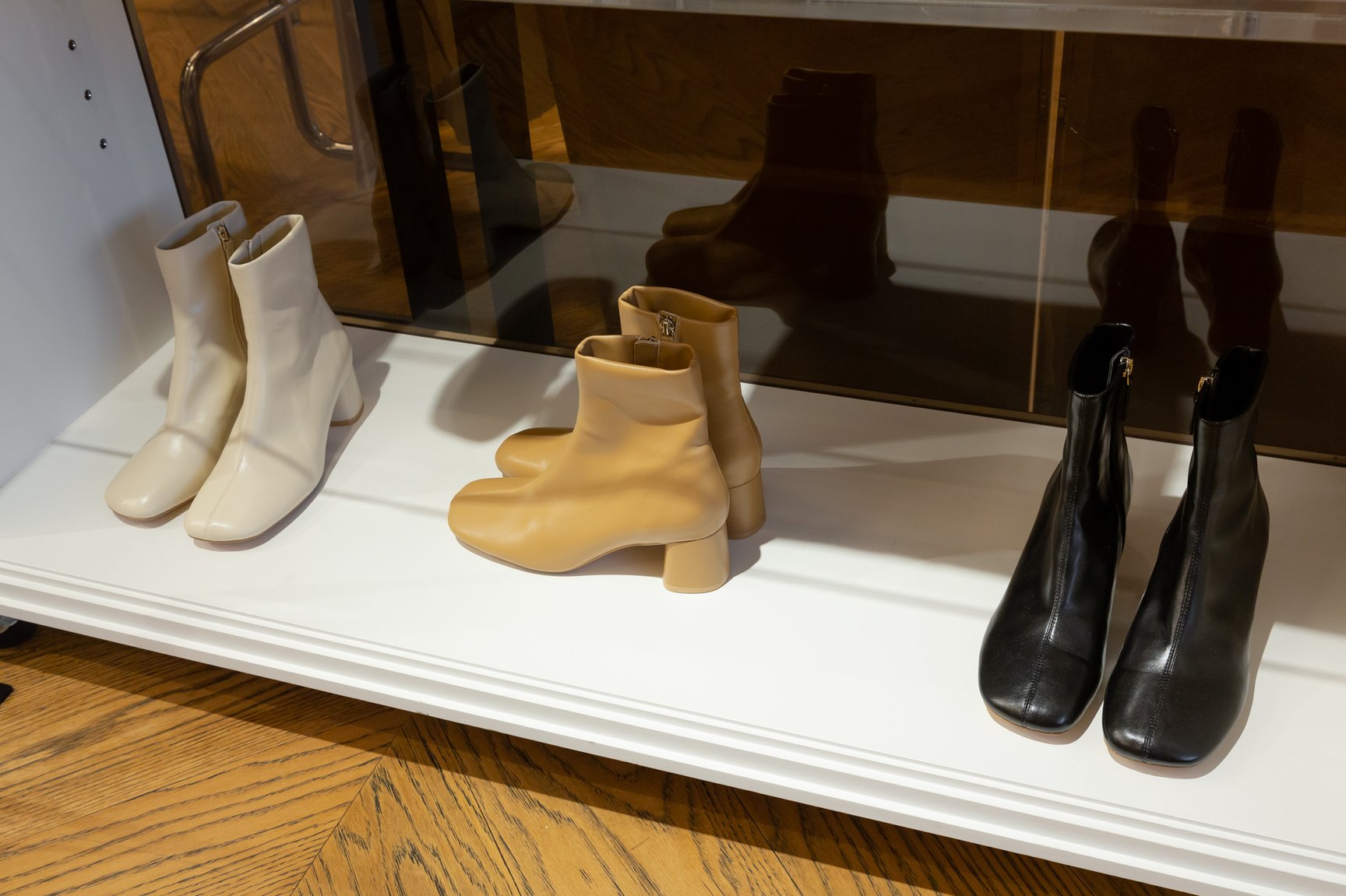雑貨では、デビューシーズンはブランド認知拡大を目的にロゴを全面に打ち出したトートバッグやエコバッグ、タンブラーなどを用意。フットウェアはオリジナルの木型を開発し、ウィメンズのショートブーツ、バレエシューズ、フラットシューズの定番アイテムとして長く使用できる3型をラインナップする。