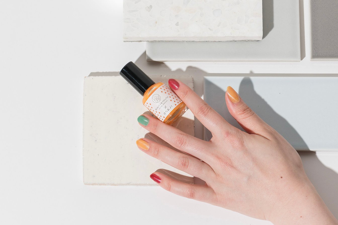 そんなビューティ&ユースがコーディネートのアクセントとしておすすめしているのが、今作のネイルポリッシュのカラー。