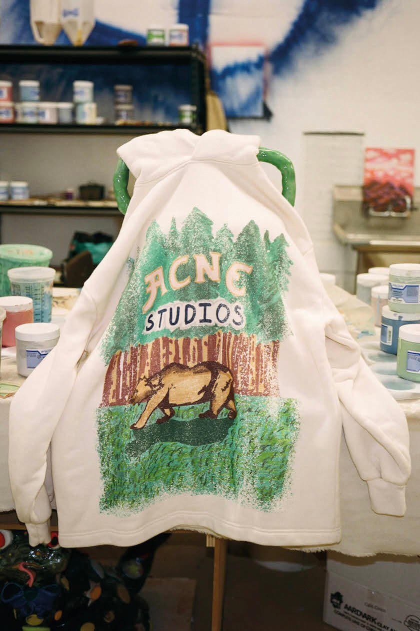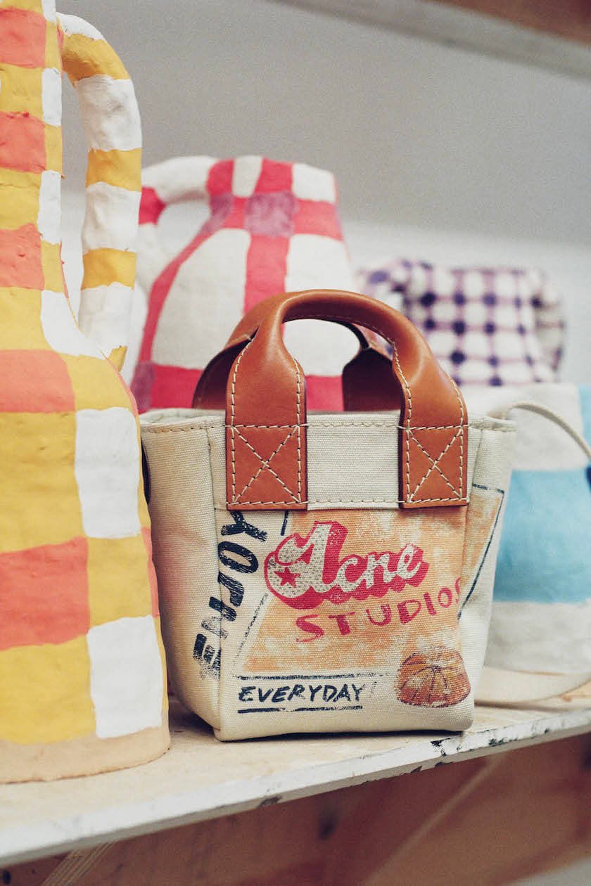 「アクネ ストゥディオズ (Acne Studios)」は、2021年秋冬コレクションにて、米国ロサンゼルス在住のアーティスト、グラント・レヴィ・ ルセロ(Grant Levy-Lucero)と再びコラボレーションし、古い小麦粉袋からインスピレーションを得たプリントコレクションを発売した。レヴィ・ルセロは、ポップカルチャーや古代をモチーフにしたセラミック作品で知られているが、今回はカリフォルニア各地の手描きの看板にアメリカのクラシックなシンボルが加えられている。