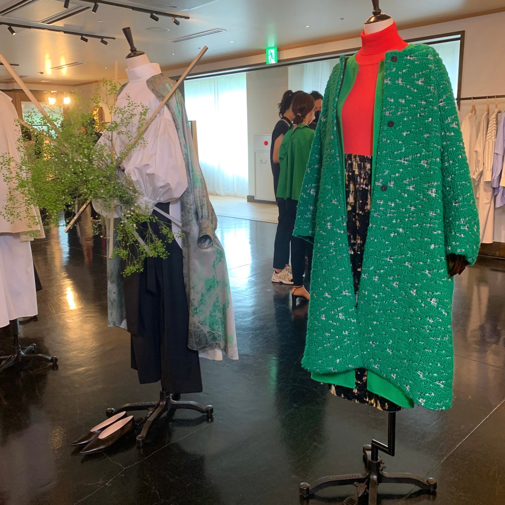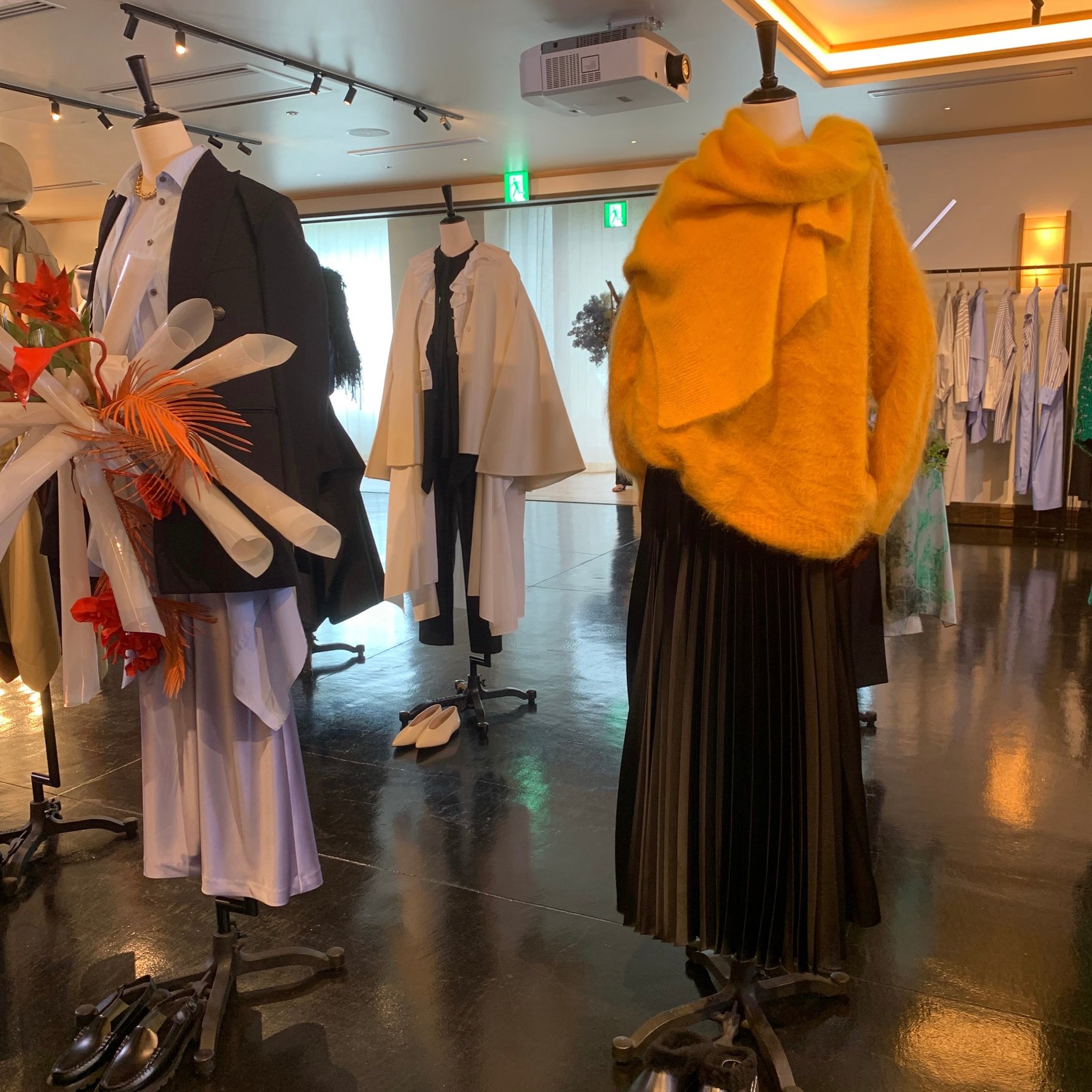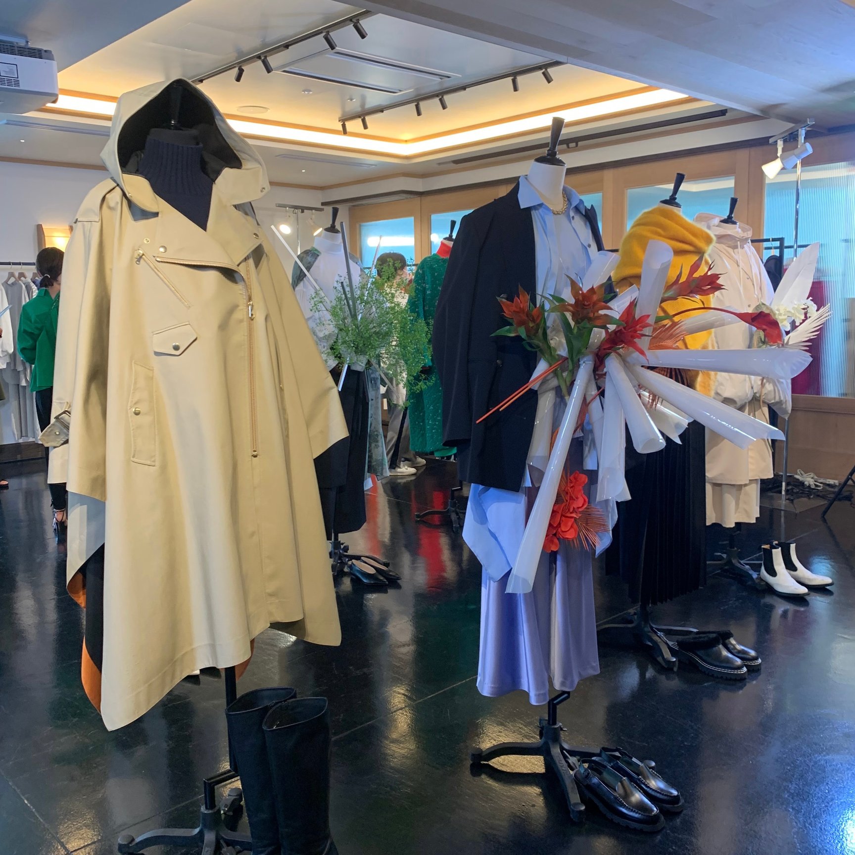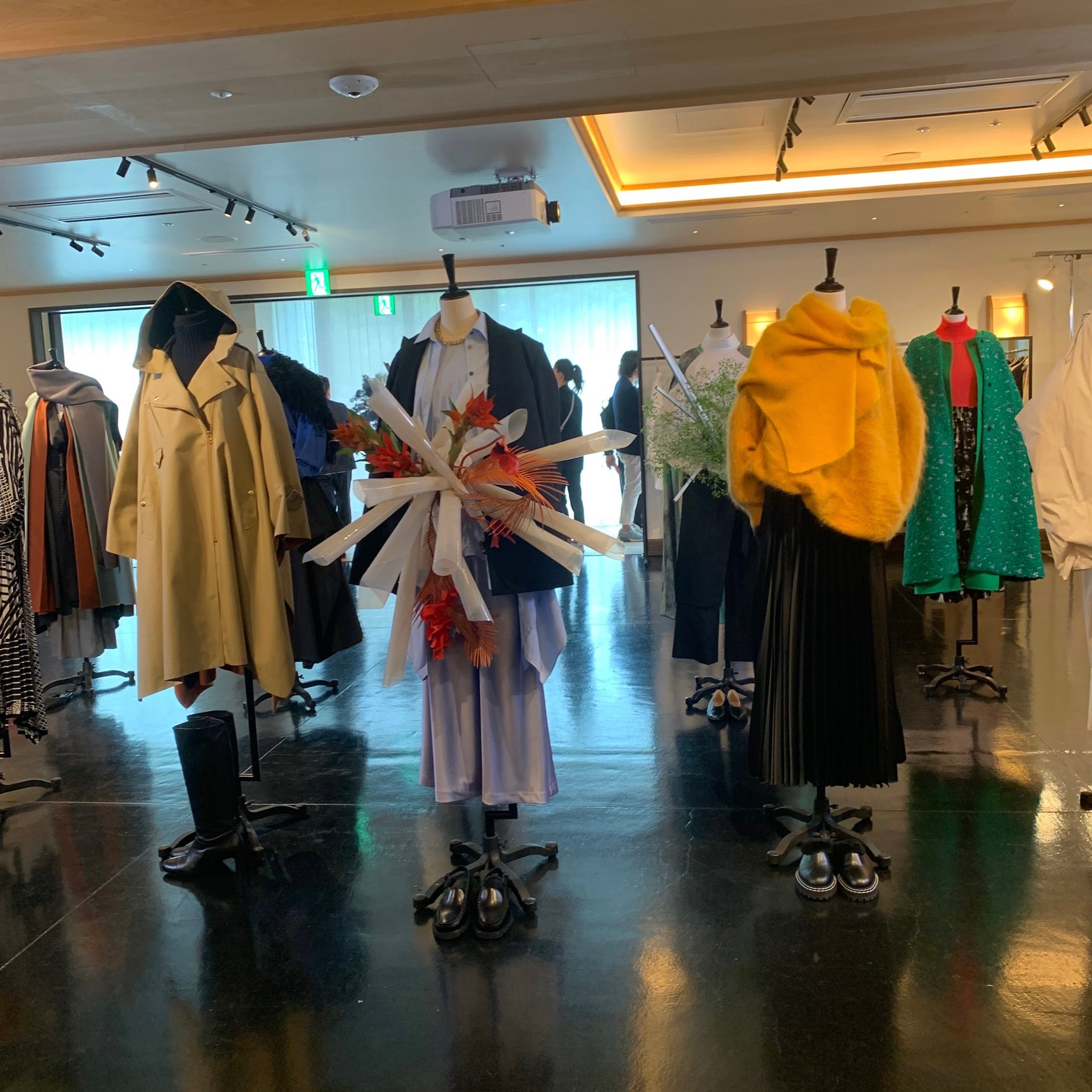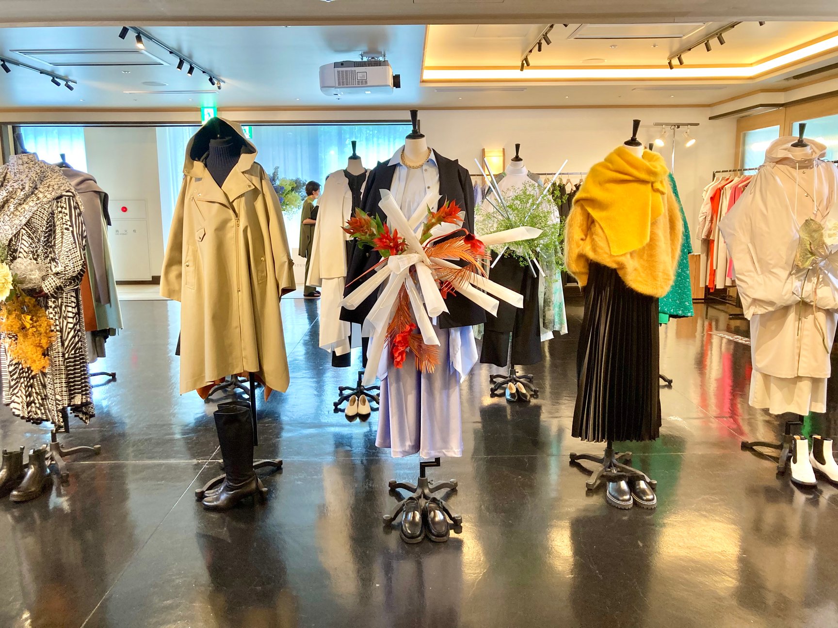 ヒューエルミュージアム展示会の様子。5ブランドのアイテムをミックスしてスタイリングしたルックが並ぶ。