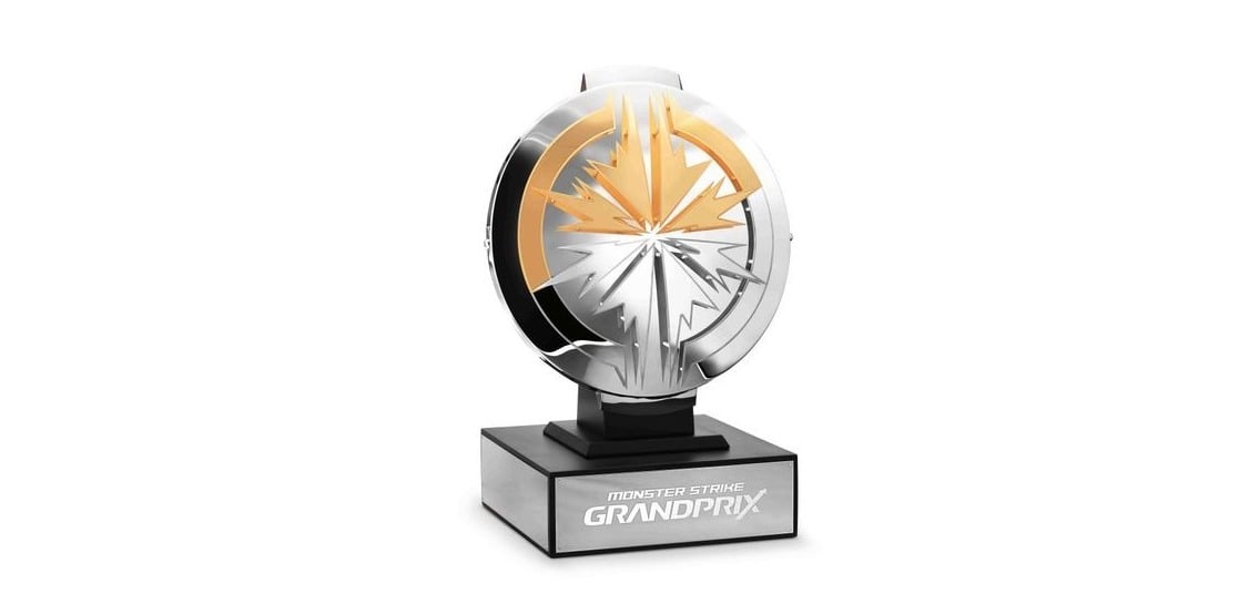 eスポーツアプリ「モンスターストライクスタジアム」を象徴するエンブレムから着想を得てデザインされた「モンストグランプリ」トロフィーは、スターリングシルバーをベースに、24Kイエローゴールドのバーメイルで仕上げられている。高さ約48センチ、重さ4.5キロ超。