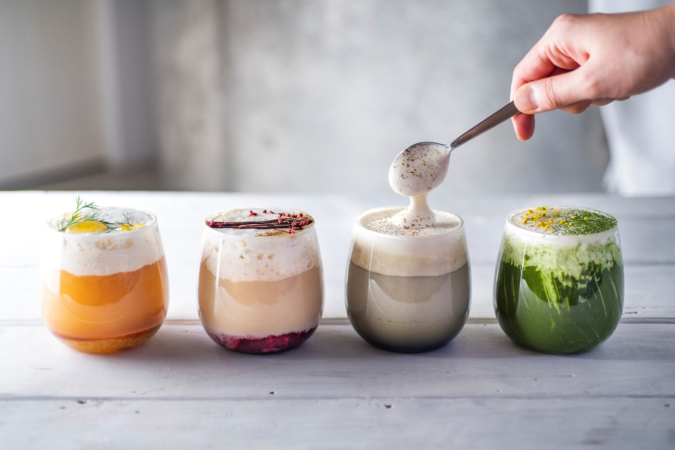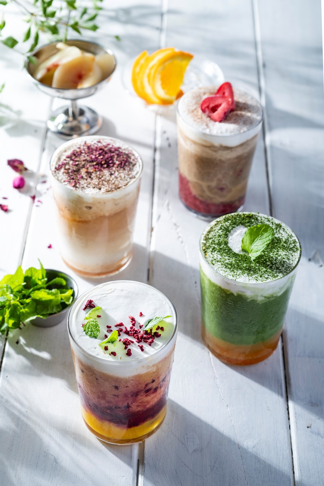 モヒートライムミント、ジンジャーレモングラス、シトラスビターが楽しめる『スパークリングティー』(税込 各626円)は、お好みでウバ、抹茶、ほうじ茶から選択できるのだとか。