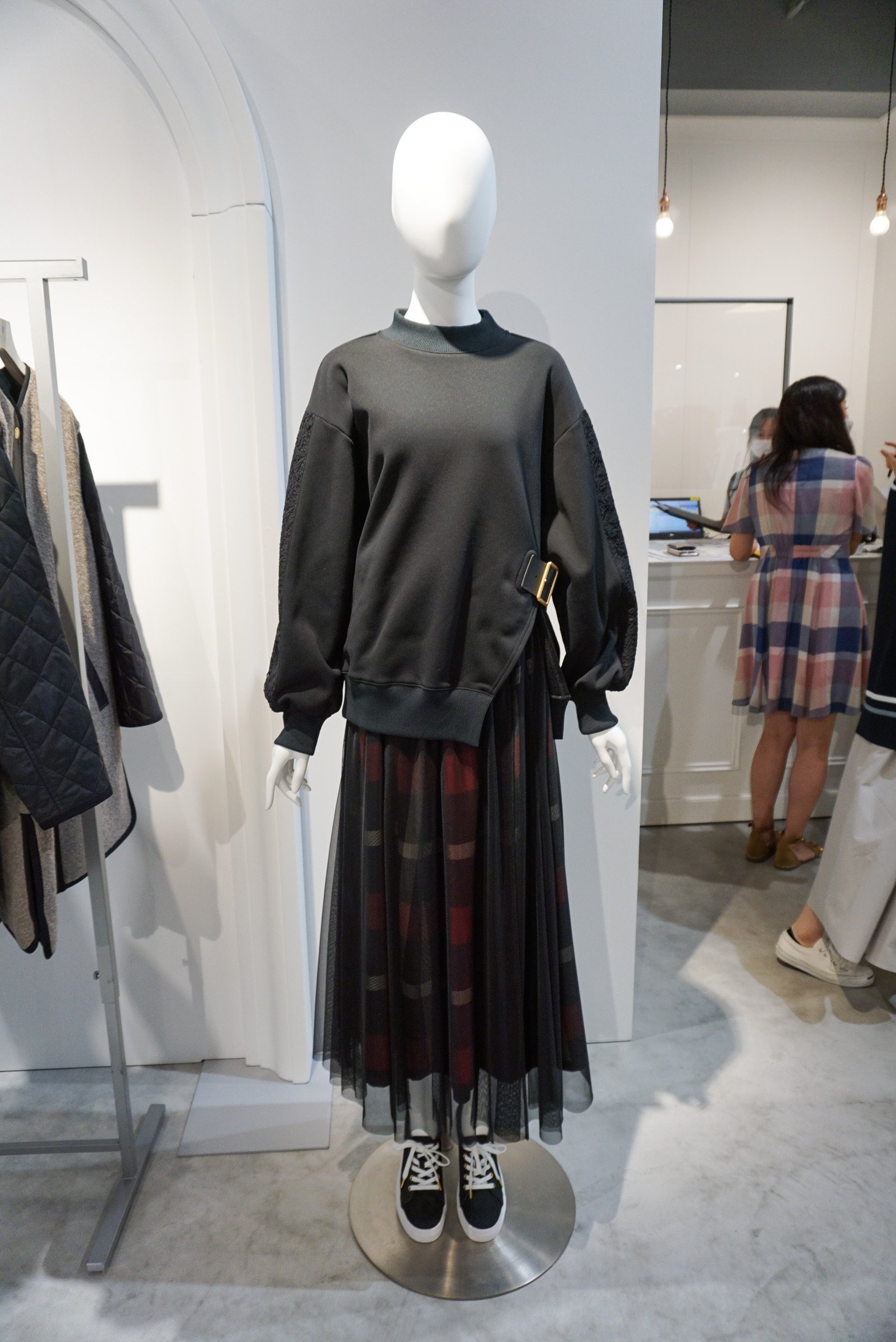 2021年秋冬シーズンにブルーレーベルで立ち上げるカプセルコレクションでは、ロンドンのヴィクトリア・アンド・アルバート博物館をインスピレーション源に、機能素材を取り入れたデザイン性の強いアイテムを提案。ボレロとワンピースを組み合わせた“2着で1着になる”コートをはじめ、異素材をドッキングしたニットやスカートなど20型をラインナップし、いずれも「メインコレクションではできない、チャレンジしたかったデザインに取り組んだ」(江角)という。カプセルコレクション専用のクレストブリッジチェック「ラボブラック」も開発した。価格帯は2万4200〜6万1600円で、メインコレクションよりも1〜2割ほど高い設定。ファーストコレクションは8月から販売し、2ヶ月ごとに区切って新作を投入する。今後もシーズンを象徴するような発信力のあるコレクションとして継続展開する予定で、ブランドのアーティスティックな側面を打ち出していく。