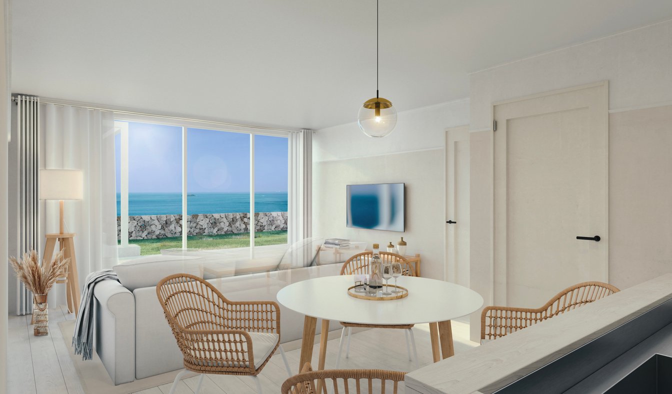 客室面積66㎡の「オーシャンビューコテージ」は、1Fにリビングとダイニング、