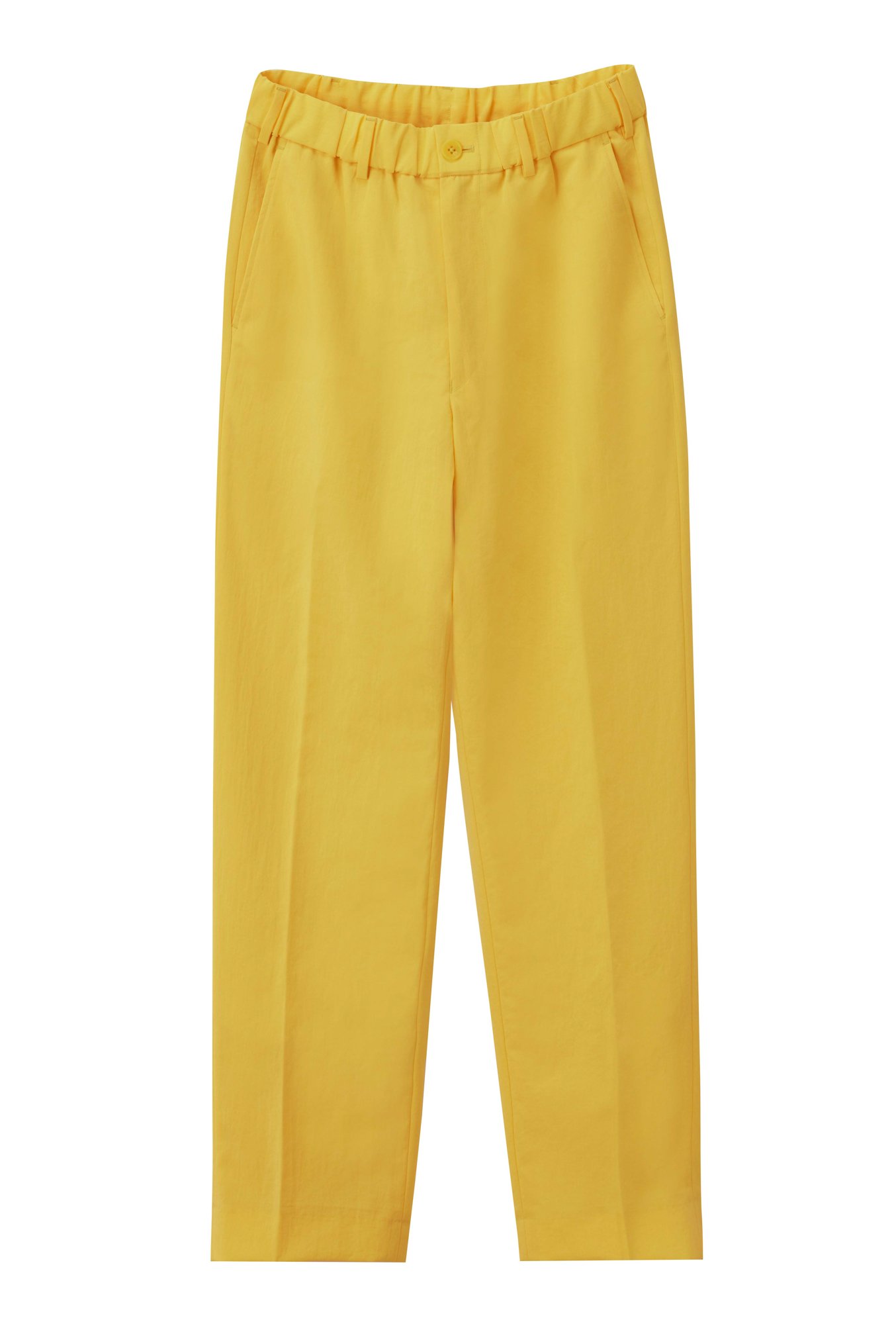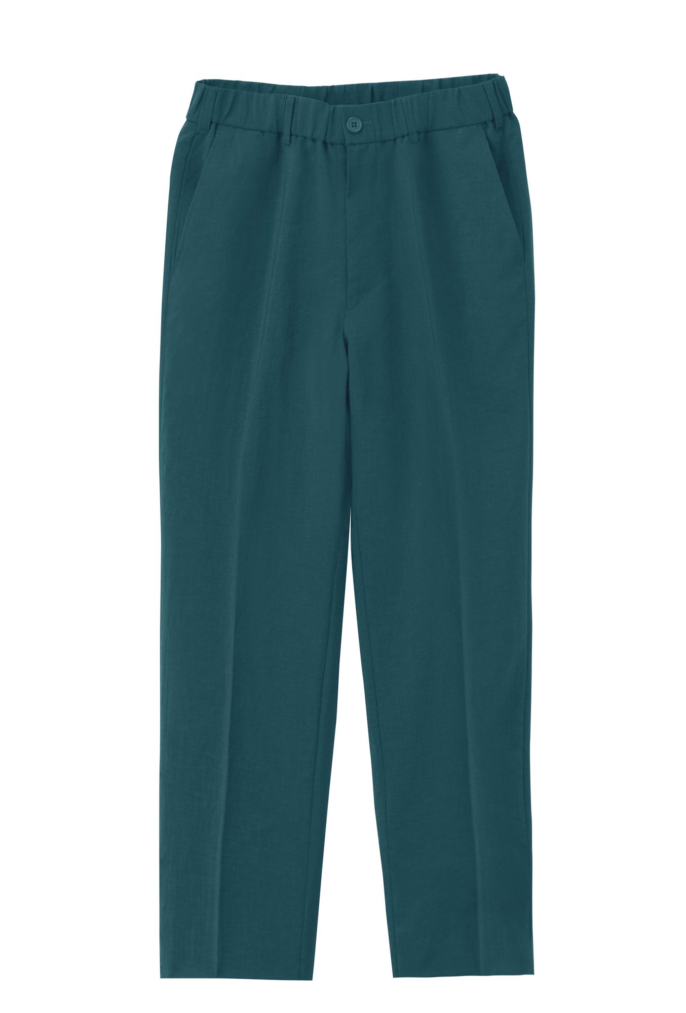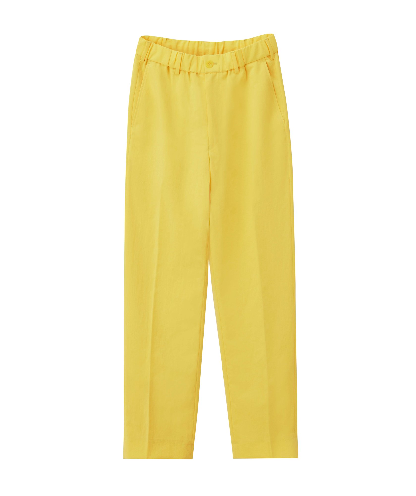 リサイクルポリエステル100%の素材を使用したイージーアンクル パンツは、特殊なねじれ加工を施したポリエステル糸と裏地には通気性のあるAir Dots素材を採用し、高い通気性を実現。ウエスト部分はひもで調整でき、リラックス感のあるテーパードシルエットに仕上げた。
