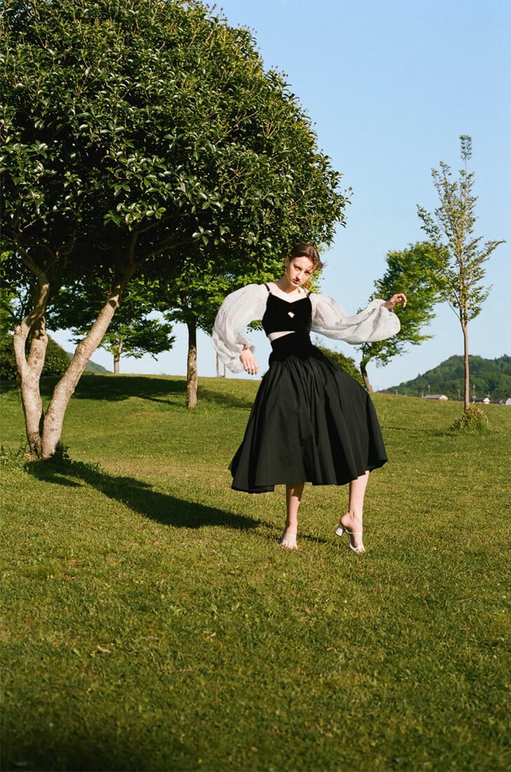 Top Photo:top and skirt by FETICO, dress by HIKARI MORIGAMI, earrings stylist’s own