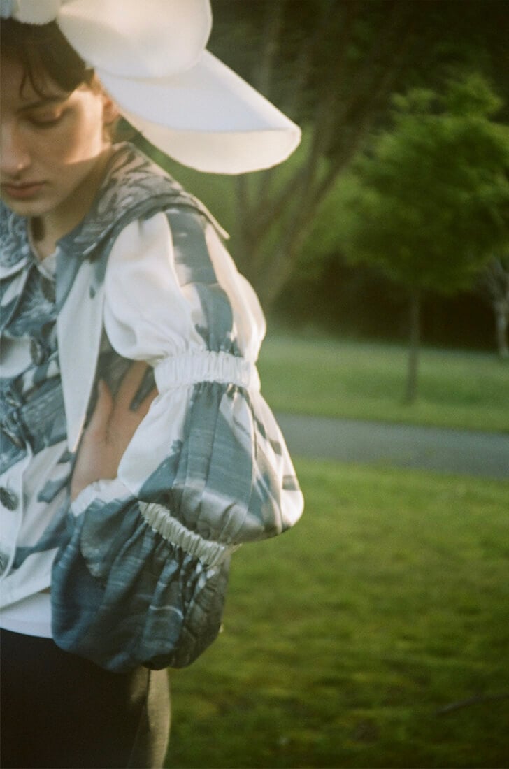 blouse by CHOPOVA LOWENA, headdress by KANA ISHIDA, shorts stylist’s own