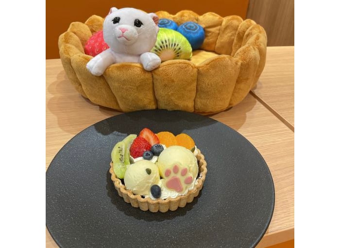 一方、「猫部パーラー」の人気メニューは、前出の「ねこまんま定食」、「プリンアラモード」、「フルーツタルト」、さらには猫部仕様のアフタヌーンセットである「ニャフタヌーンセット」。「スイーツセット」と「ワインセット」の2種類で、かわいらしい猫のフレームに、スイーツバージョンは2人で楽しめる小さなスイーツを盛り合わせて提供、ワイン用のセットは、ワインに合う前菜の盛り合わせをサーブ。どちらも日替わりで、訪れるたびに楽しめるのが特徴だ。