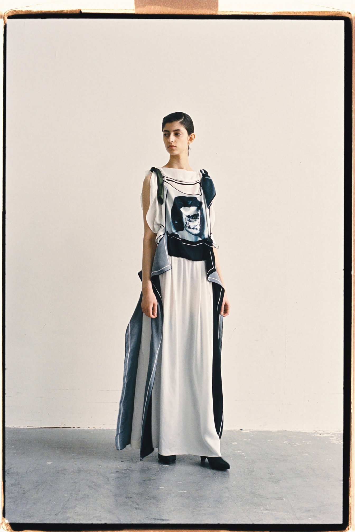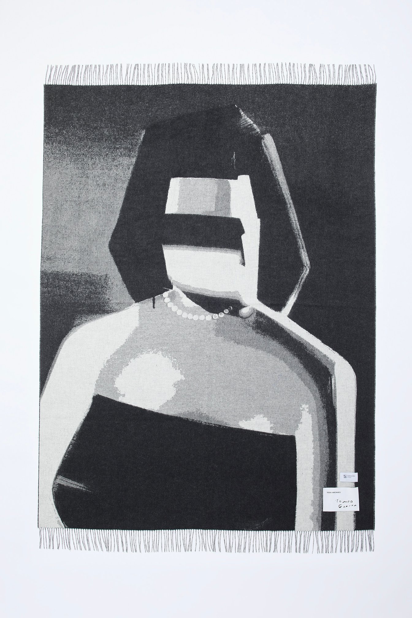 また、スコットランド最古の生地メーカー「ジョンストンズ(Johnstons)」を迎えたトリプルコラボレーションも実現。五木田のモノクロ作品と、最新の展覧会で発表されたカラー作品を編み込んだ大判カシミヤストール2種を、10月中旬より「トーガ」直営各店および公式オンラインストアで取り扱う。価格は各16万円(すべて税別)。