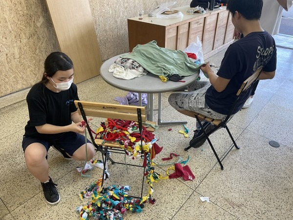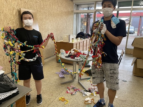 また、店内装飾の資材として活⽤する取り組みも進めており、「浪漫亭」をオープンするにあたり地域の人に古着を持ち寄ってもらい裂き布で店内の壁を覆いつくすワークショップイベントを開催した。