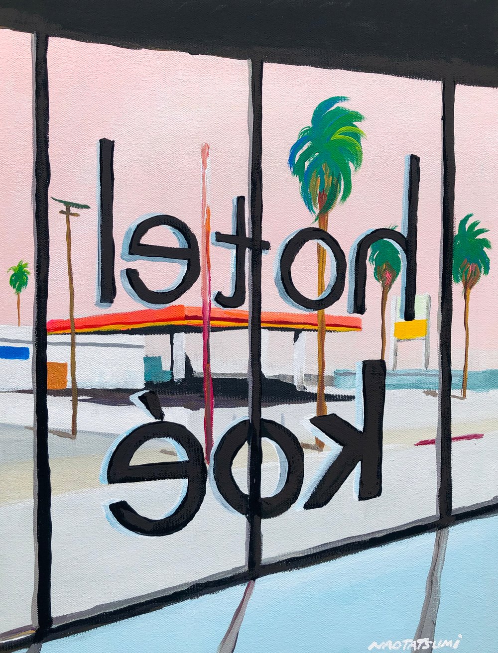 hotel koe tokyoで、8月12日(木)からスタートした個展では、映画好きの辰巳さんが観たロードムービーを舞台に、全20作品が展示されています。