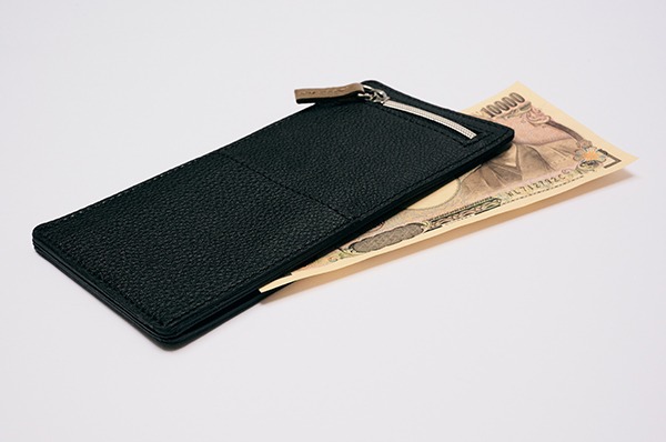 クリアファイルの要領でお札を挟み込む仕様にすることで、限界までスリムでコンパクトを実現。これ以上小さくすることができない、一万円サイズとなっている。