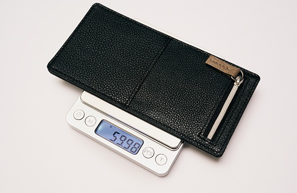 重さは60グラム。究極に削ぎ落とされたデザインで、どの財布よりも軽くなった。