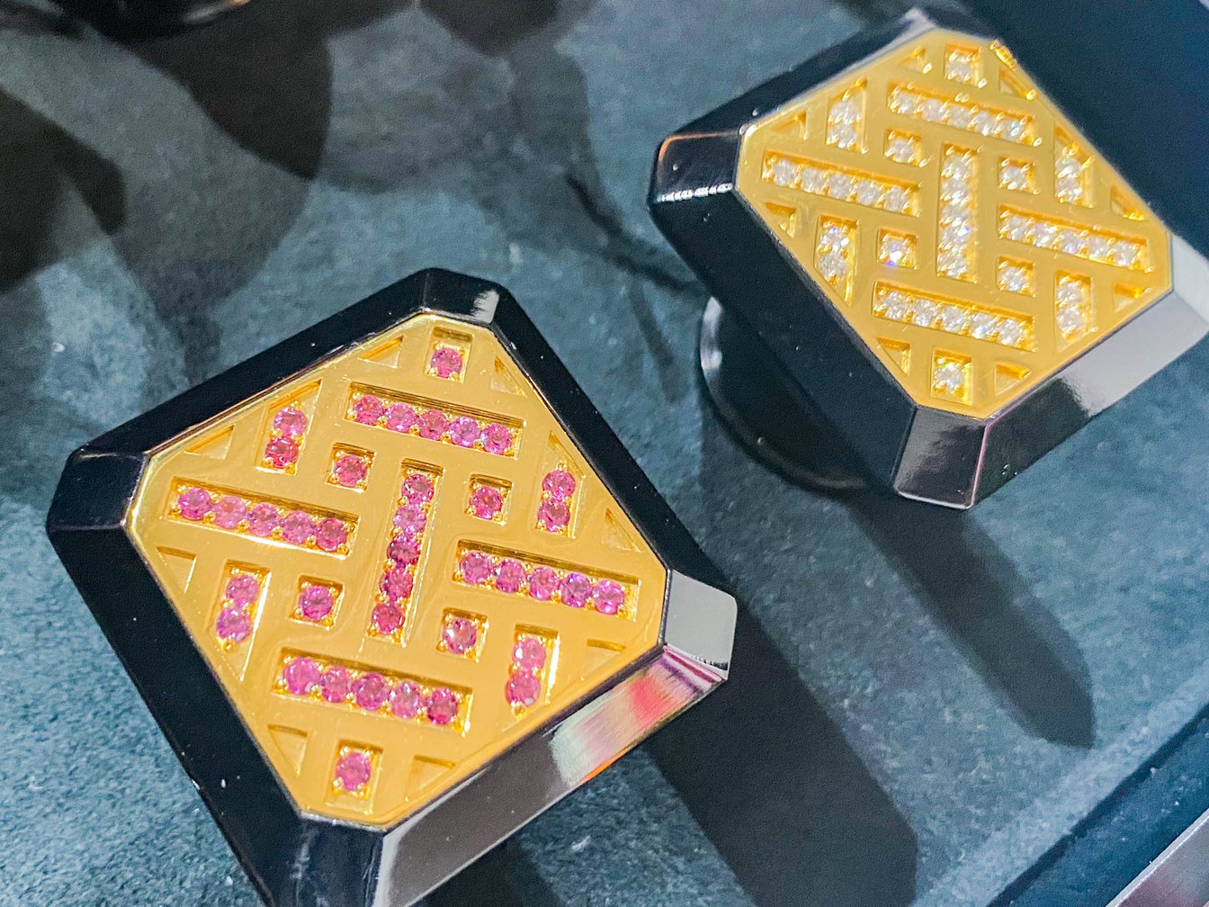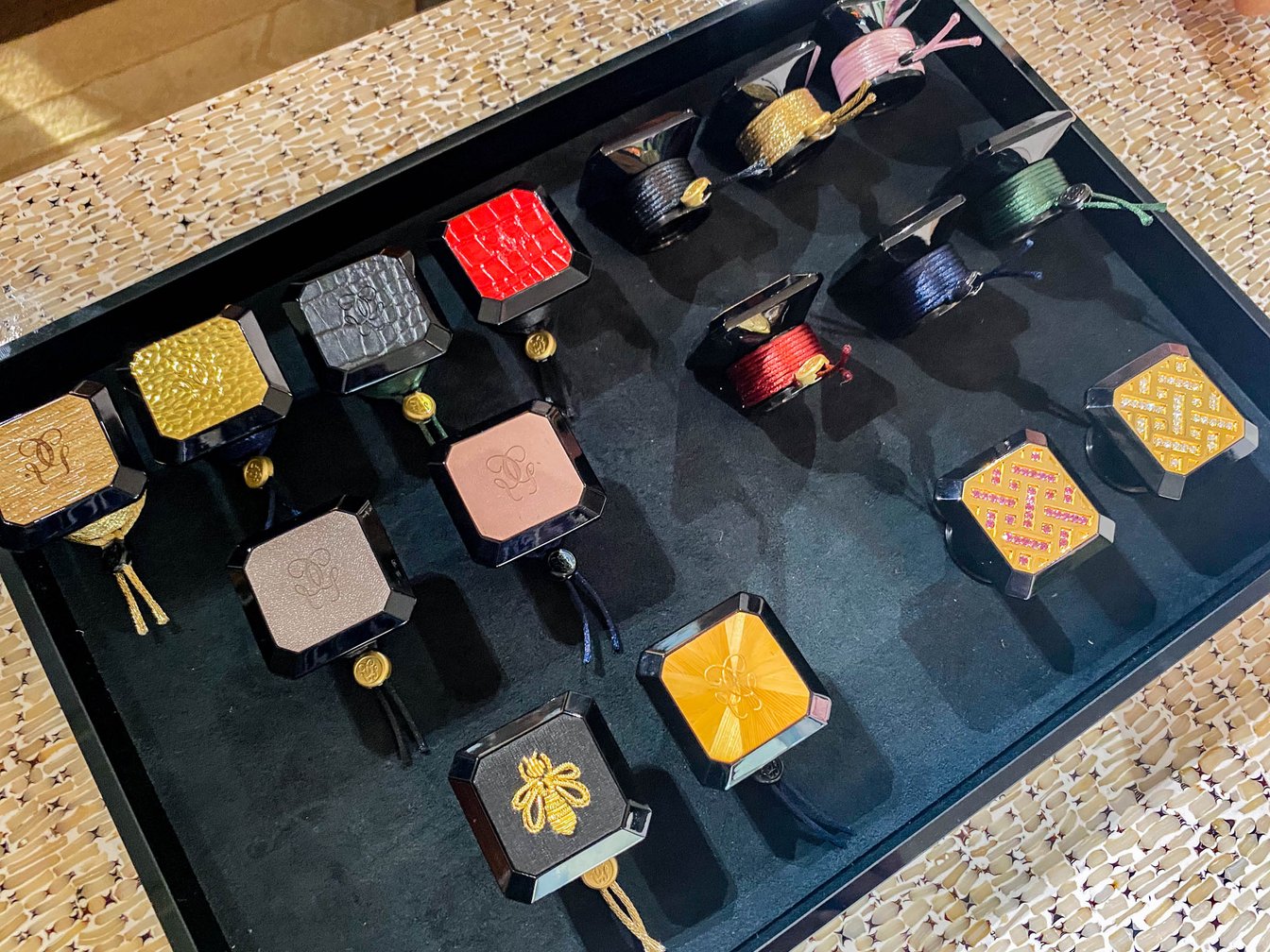 キャッププレートやコード、刻印などをパーソナライズできるのも特徴。キャッププレートはスムースレザーやクロコダイルの型押しレザー、ウォルナットなど12種類の無料のコレクションプレートのほか、天然の真珠層を使用したプレートや40粒のロードライトガーネットや合成ダイヤモンドをあしらた有料プレートなど数量限定の5種類を用意している。コードの色はゴールド、ブラック、ブルー、レッド、ピンク、グリーン、コードシールはブラックとゴールドから選ぶことができる。ボトルにはイニシャルや短いメッセージなどを刻印することが可能だ。