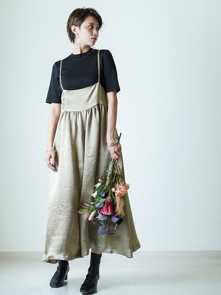 「クラッシュサテンワンピース」¥14,300(税込)、