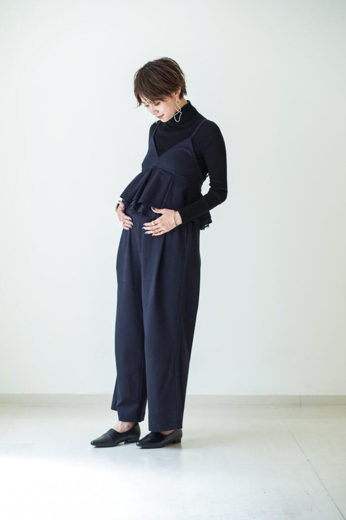 「MEDEL」の洋服は、体型の変化に合わせて対応できるデザイン・仕様により、大きく体型が変化するマタニティー期でも快適に着られるのが特徴。