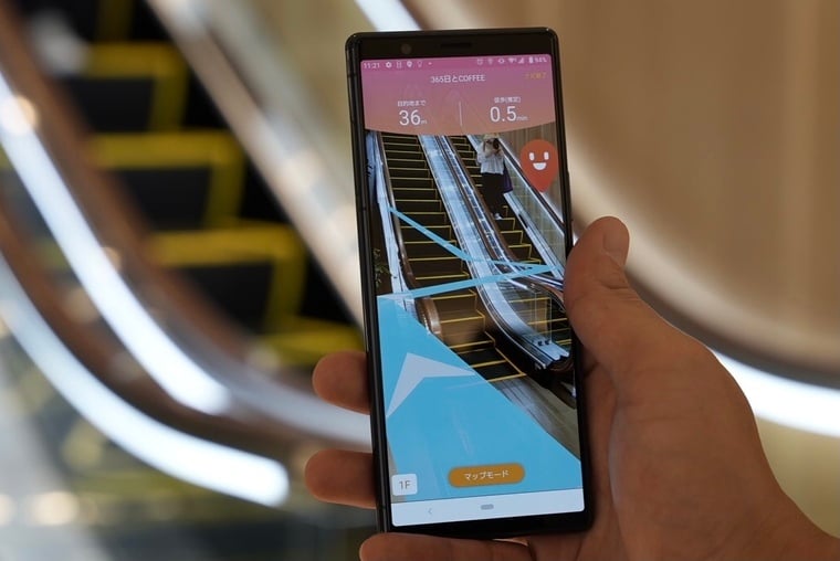 従来のような平面マップでの利用もできるが、より視認性に優れたARマップモードも搭載。スマートフォンのカメラを目の前にかざすことで行きたい場所への最短ルートが矢印で表示され、より直感的に目的地へと移動することができる。各ショップのほかインフォメーションやATM、授乳室、トイレ、ロッカーなど様々な場所へ道案内ができる。