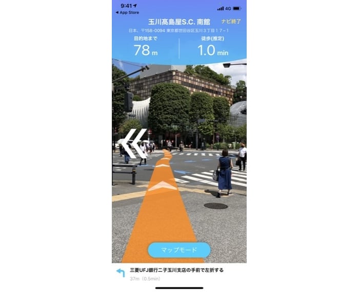 玉川高島屋SCはこのほど、モバイル通信機器のレンタルなどをしているテレコムスクエアが提供するARナビゲーションアプリ「PinnAR」(ピナー)を活用した館内案内を導入した。ピナーによる館内案内のSCへの導入は全国でも初めて。まずは百貨店ゾーンを含む本館と南館で使えるようにした。