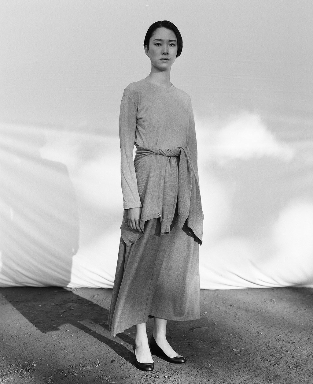 アイテムはエイジレスでジェンダーレスのベーシックカットソーで、半袖Tシャツ8000〜9000円、長袖Tシャツ9500〜10500円、ワンピース16000円など。1枚でも、インナーとしても着用できる。